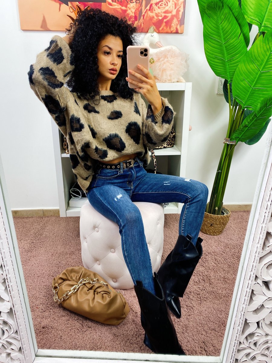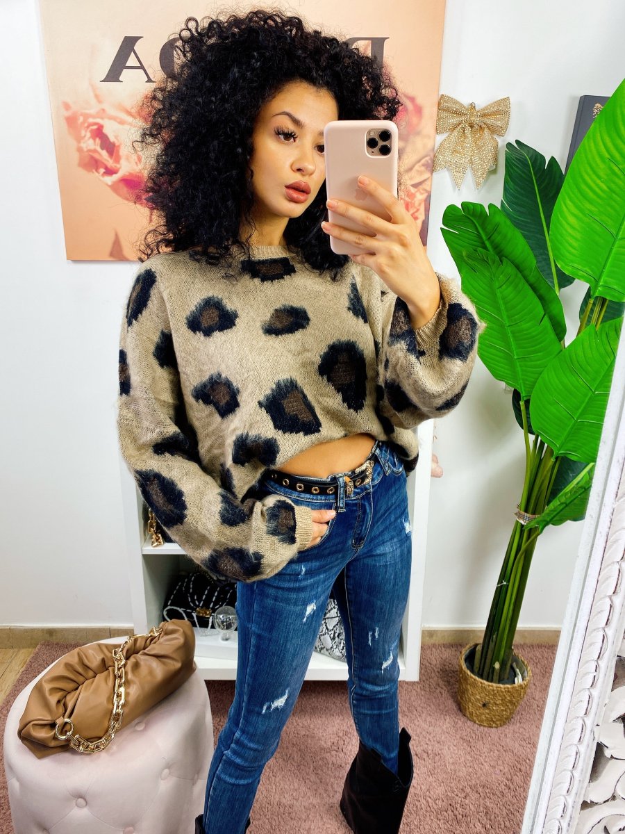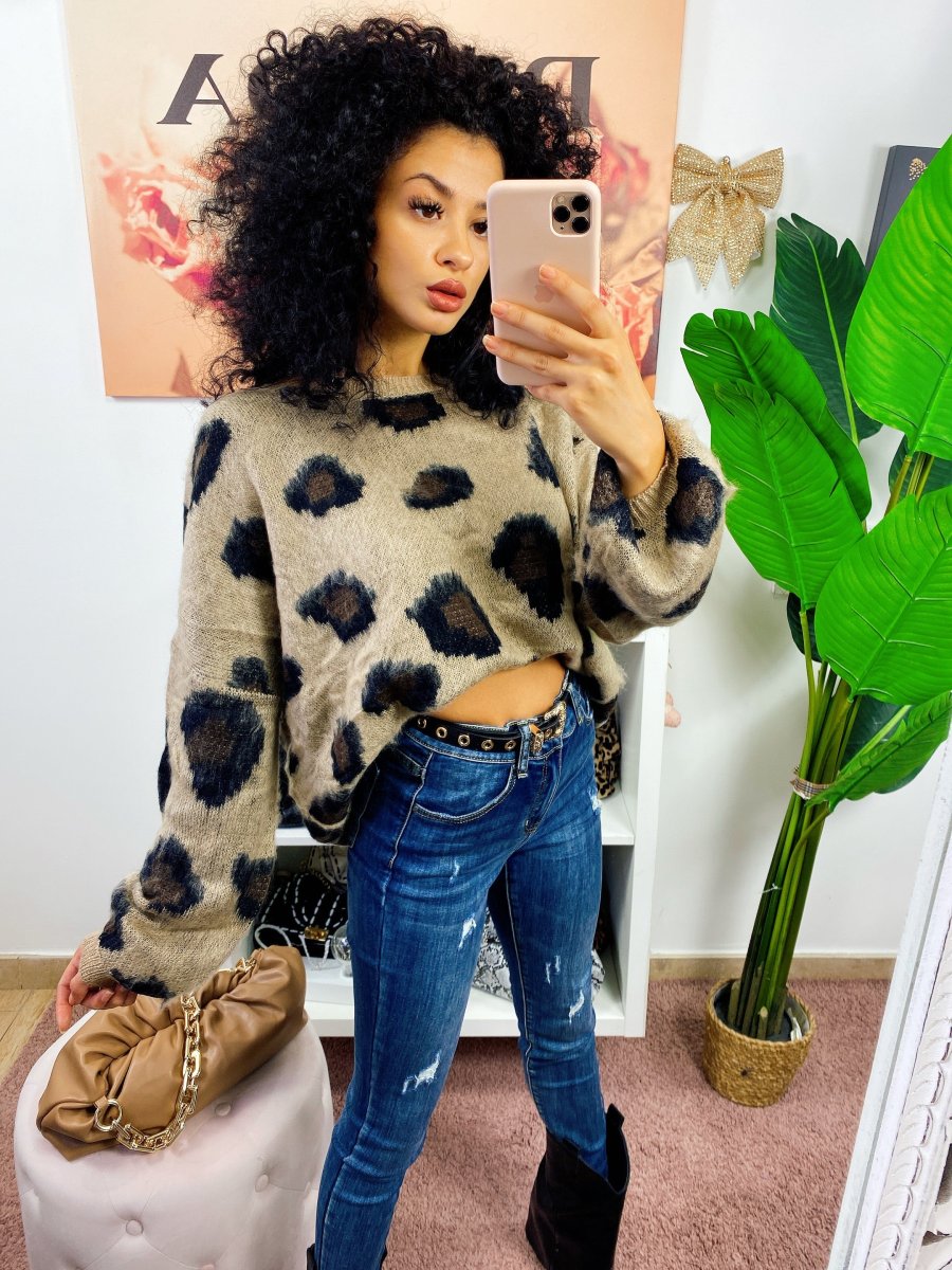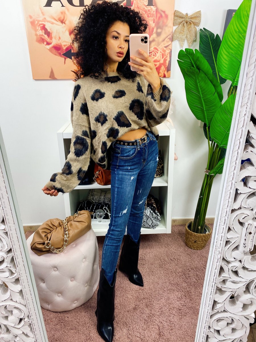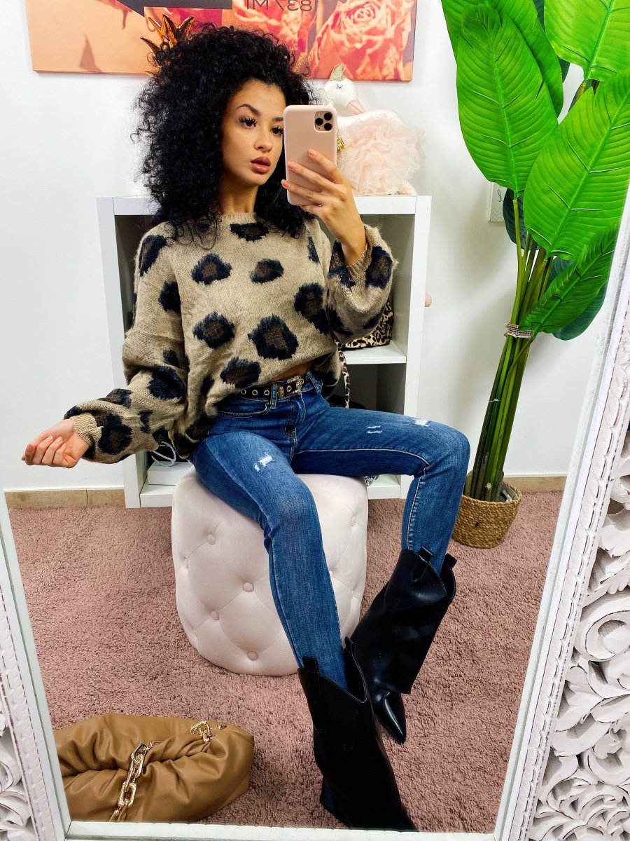 Morbido maglione in trama maculata. Tessuto caldo elastico