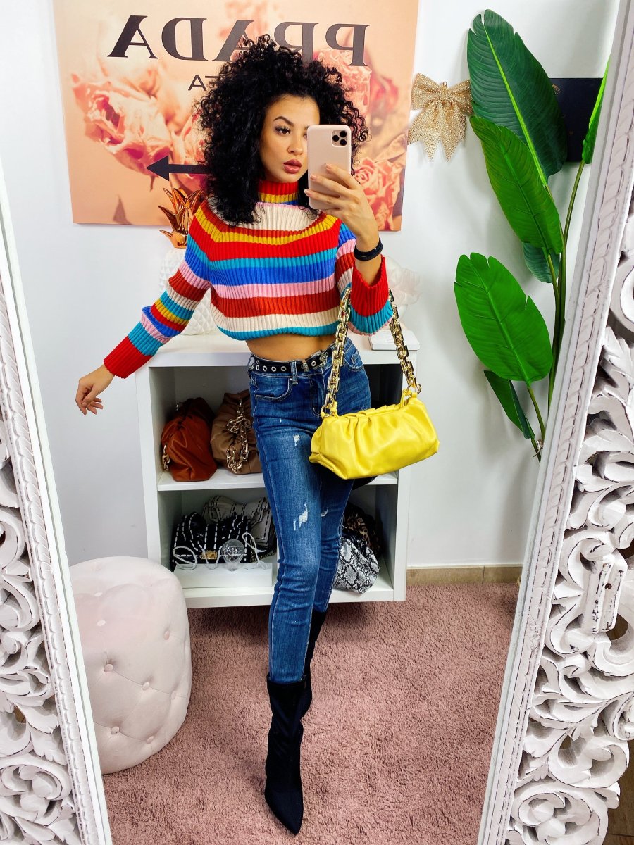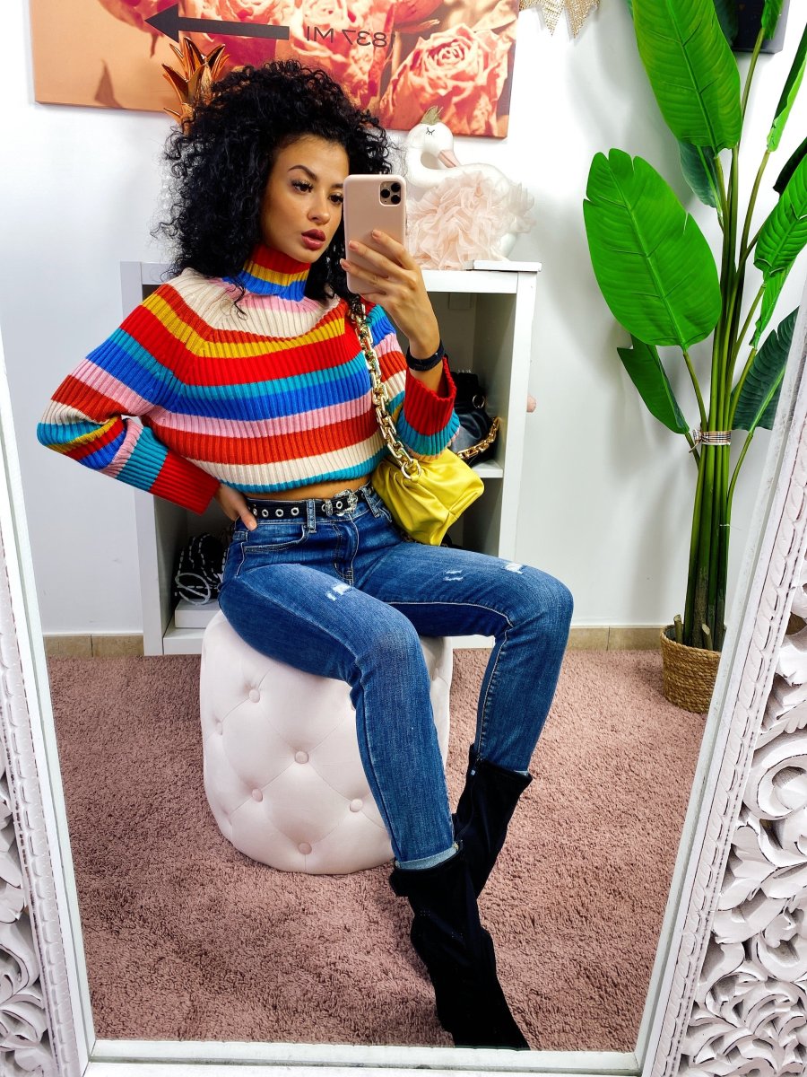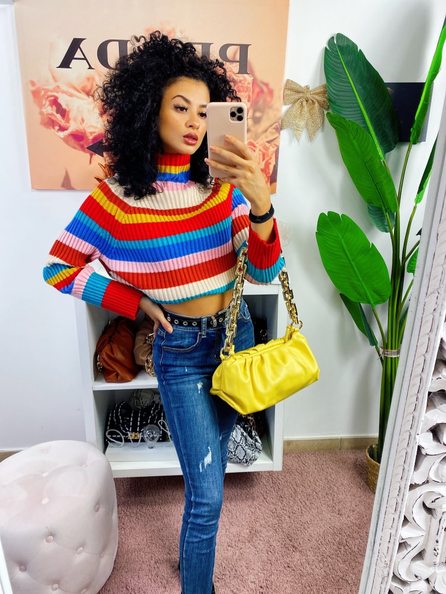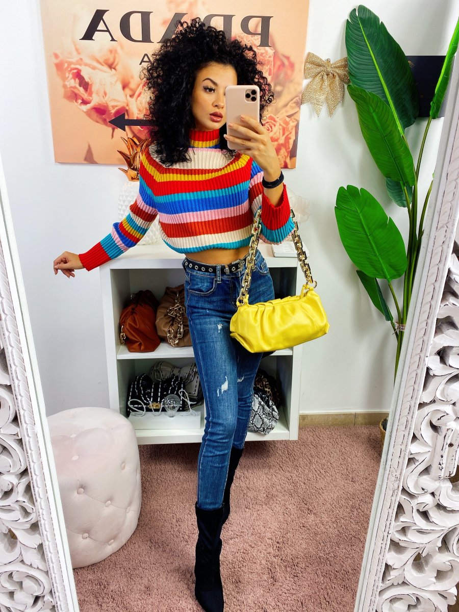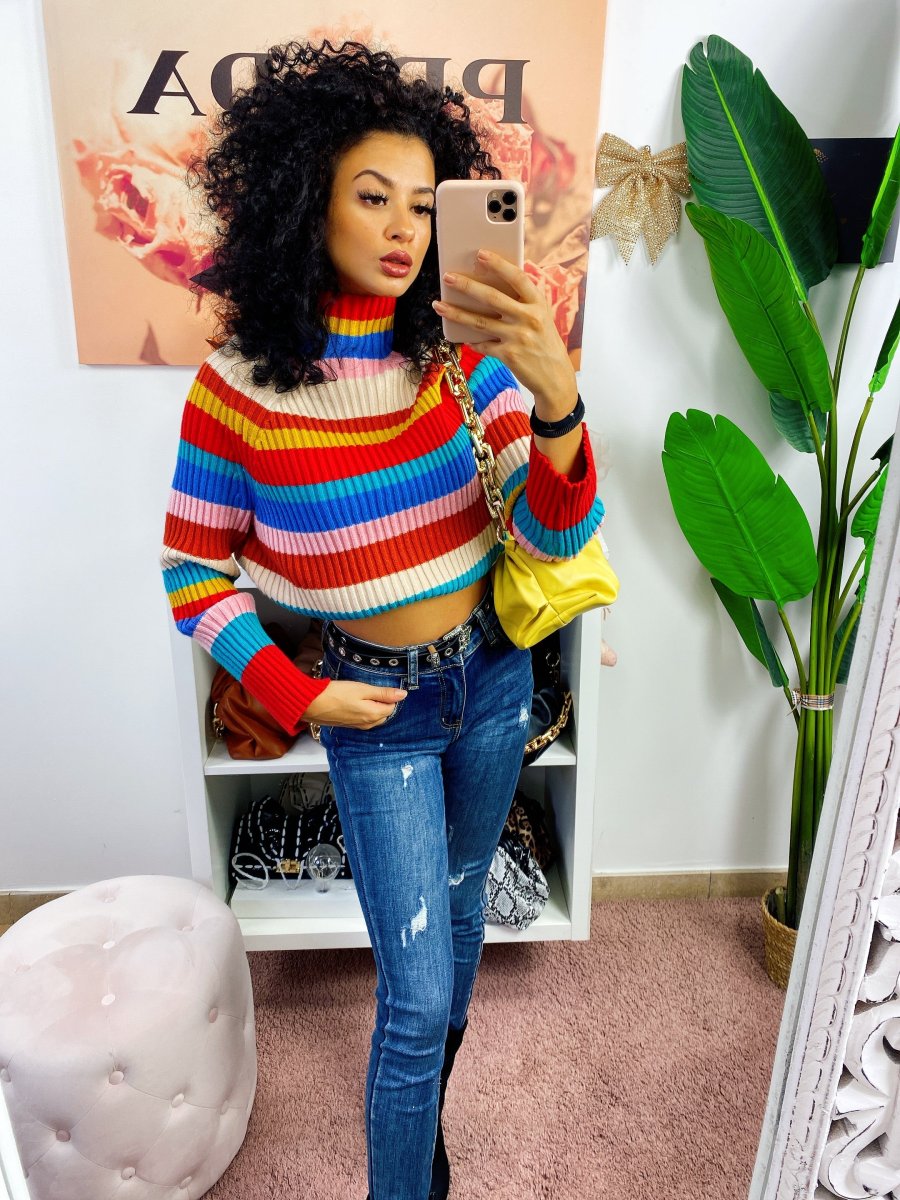 Maglione a collo alto coloratissimo. Morbido e pesante