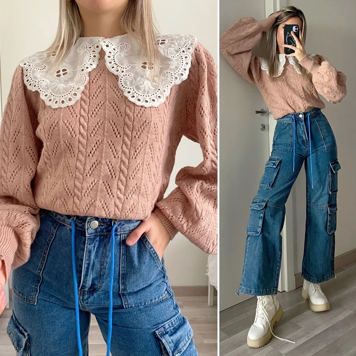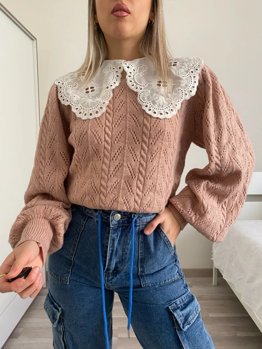 Maglione top quality collo Camicetta A trama a trecce, morbido e caldo.