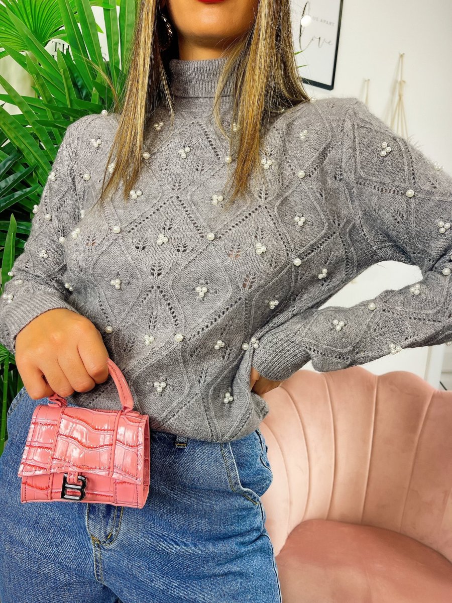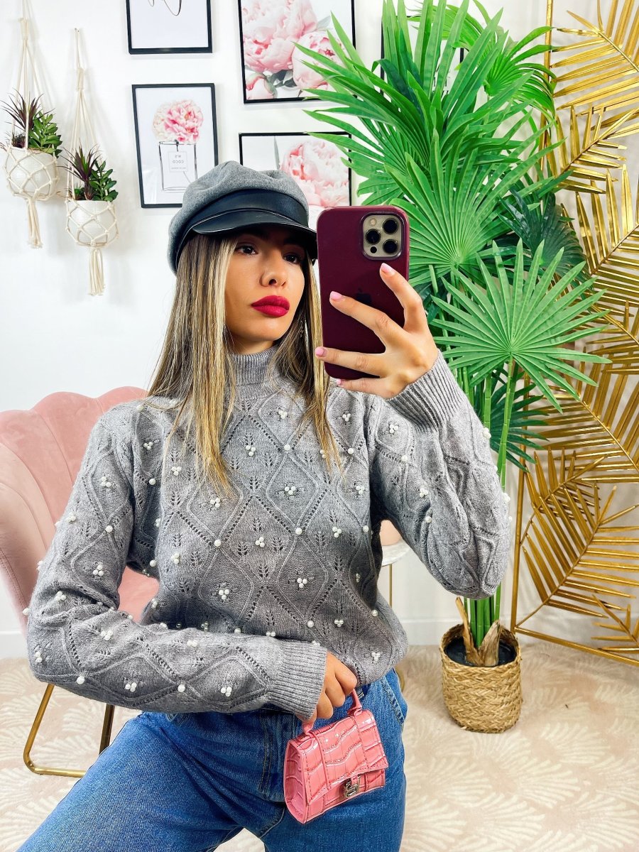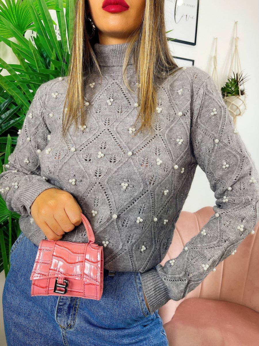 Maglione top quality con perle, morbido e caldo con collo leggermente alto.