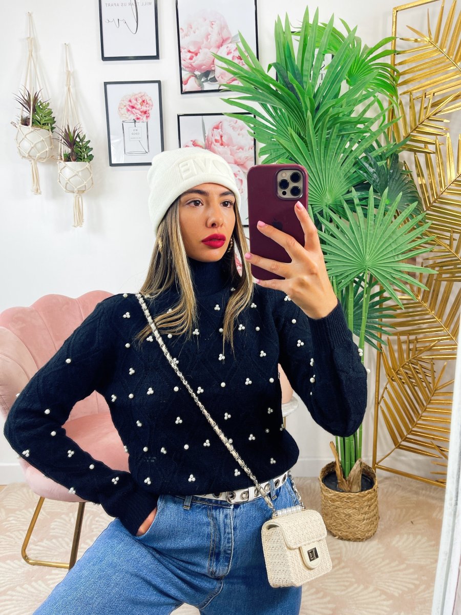 Maglione top quality con perle nero