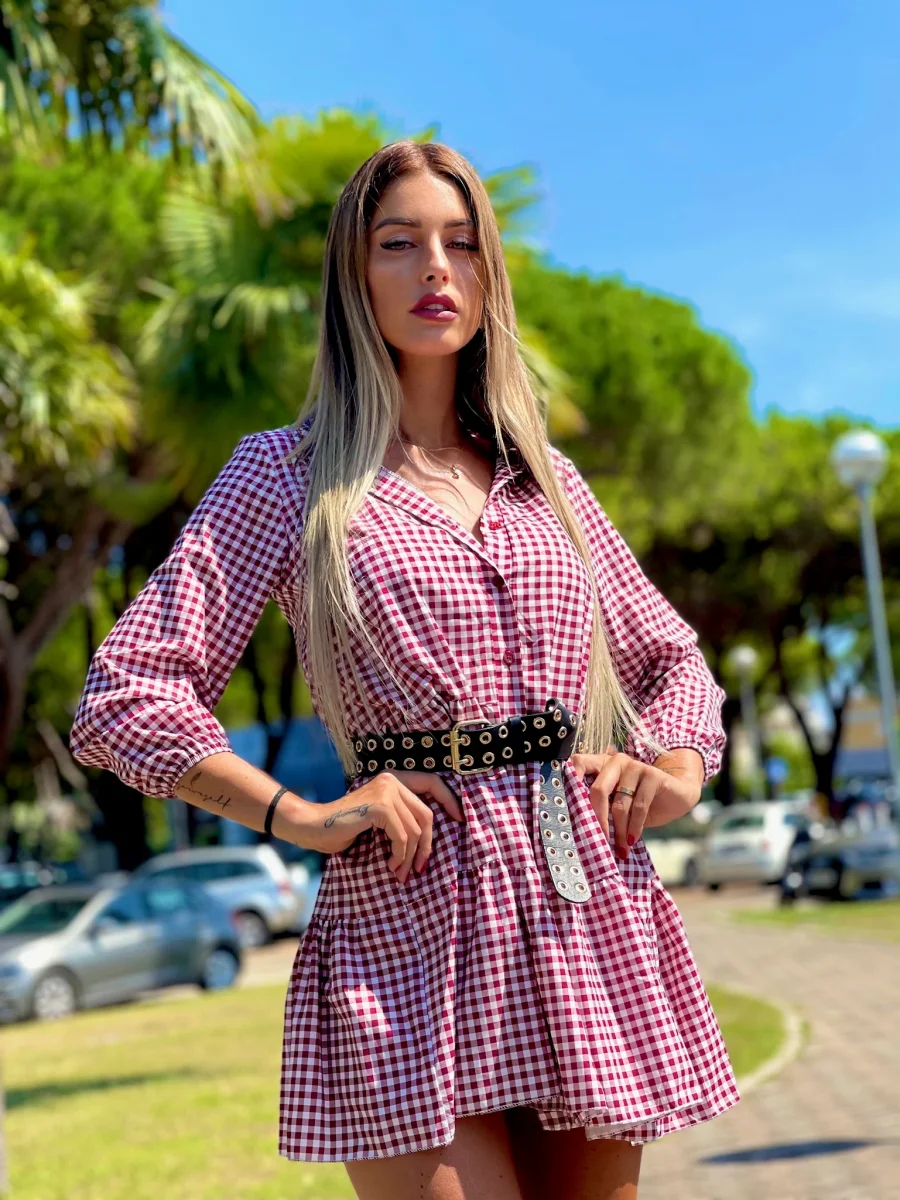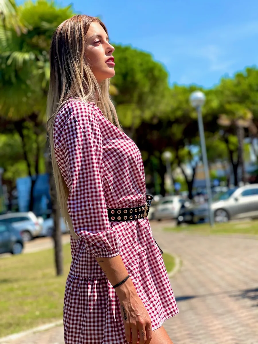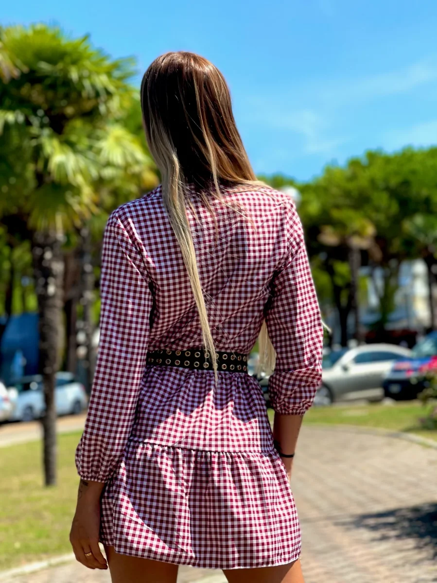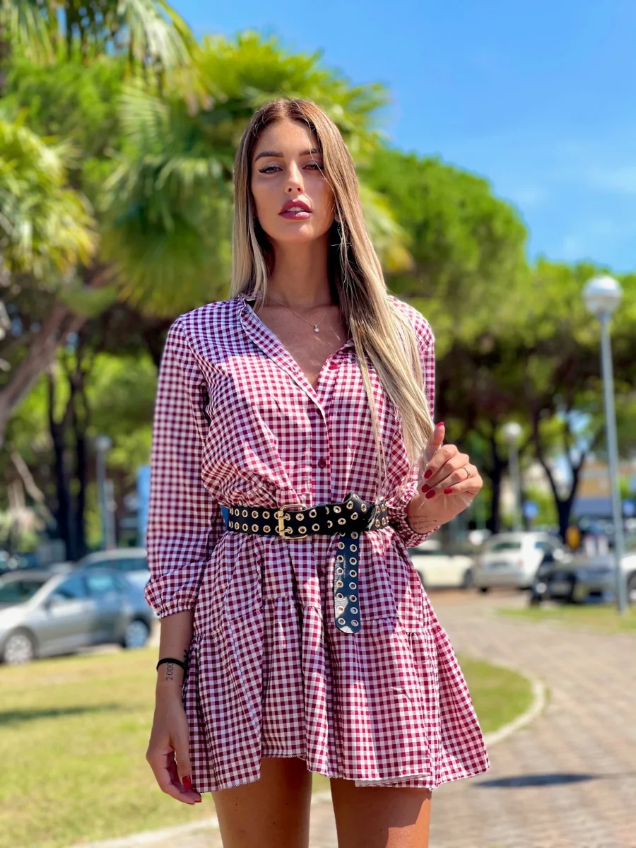 Maxi camicione a quadri bordeaux