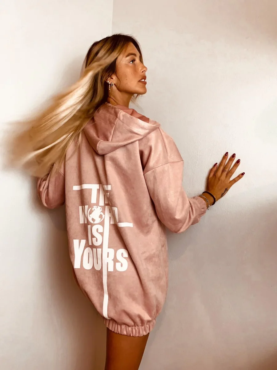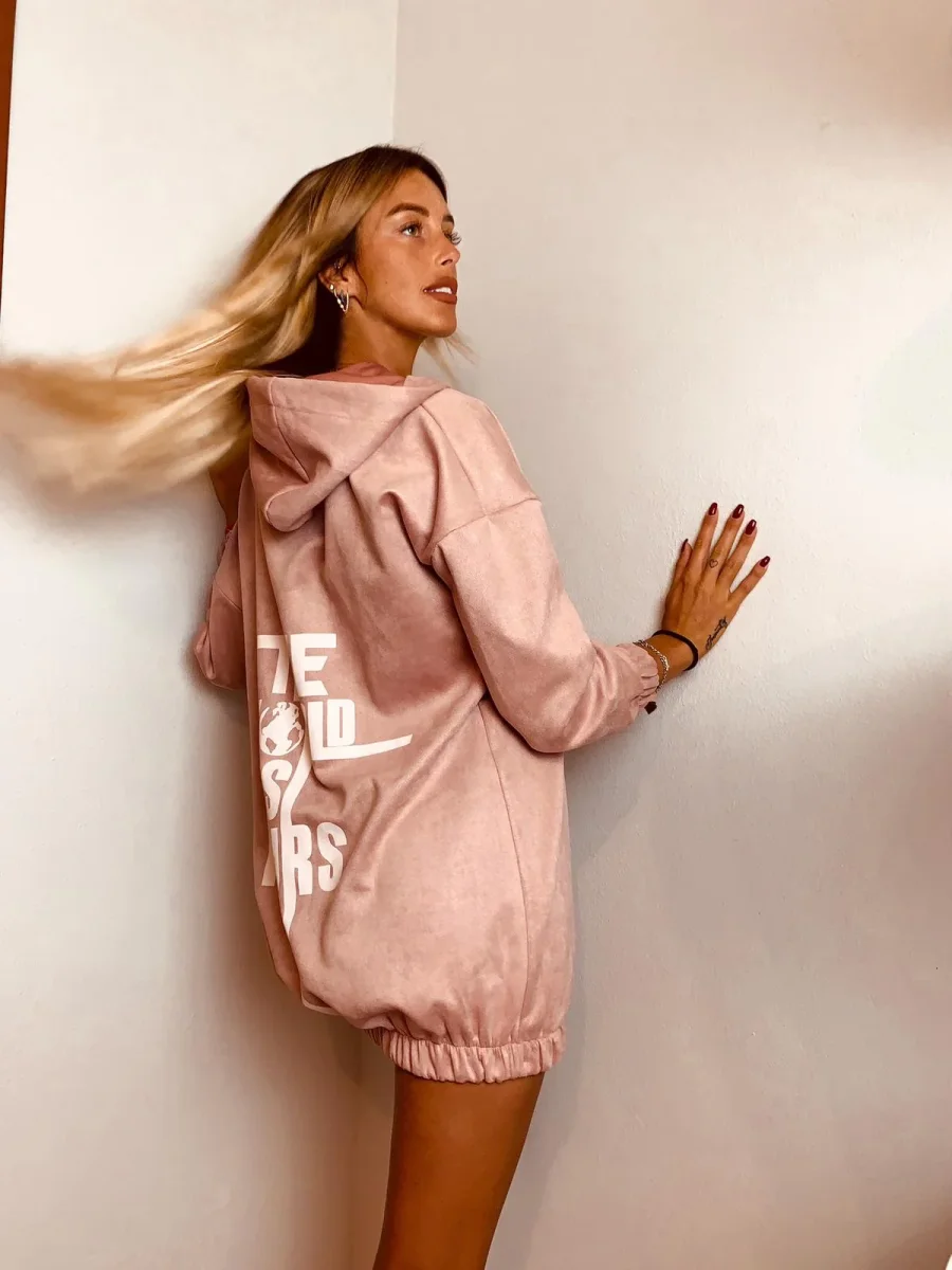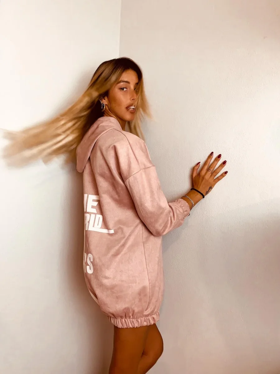 Maxi felpa in tessuto camoscio pesante dal taglio over. Chiusura con zip sul davanti. Può essere usato come giaccone