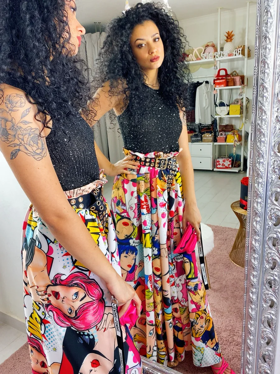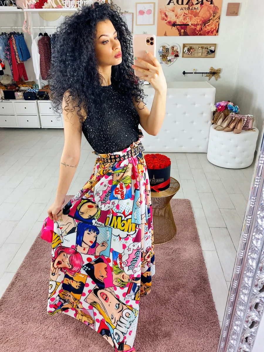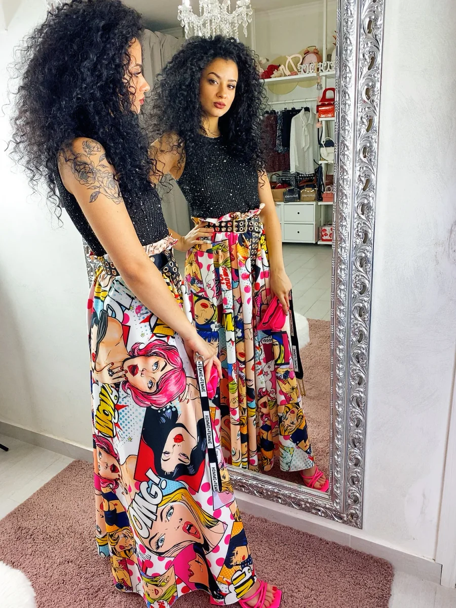 Maxi gonna elasticizzata in vita stile cartoon, renditi particolare, indossala quando vuoi nei tuoi outfit.
