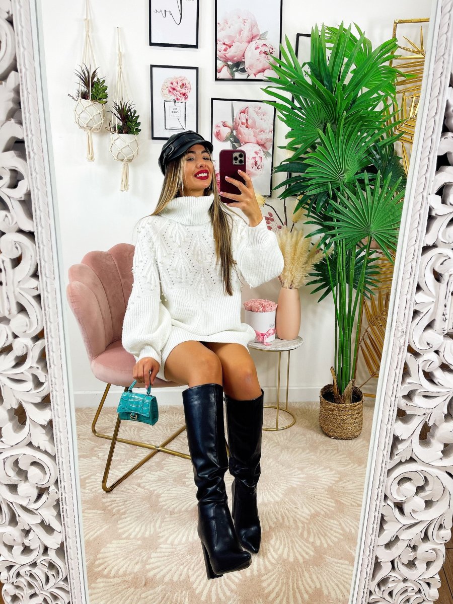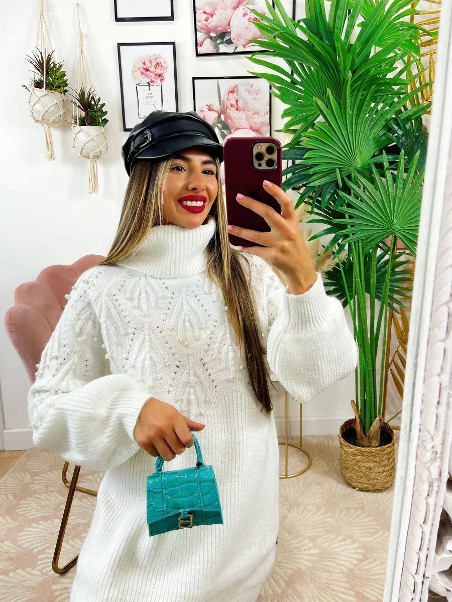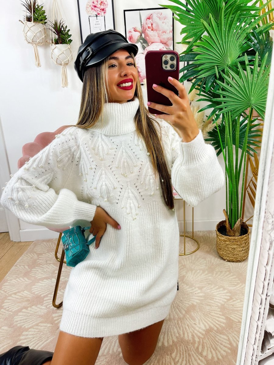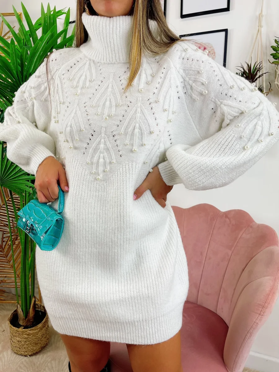 Maxi maglione collo alto con perle Ottima qualità, può essere indossato anche a vestito.