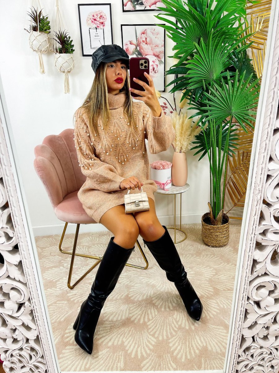 Maxi maglione collo alto con perle Ottima qualità, può essere indossato anche a vestito.