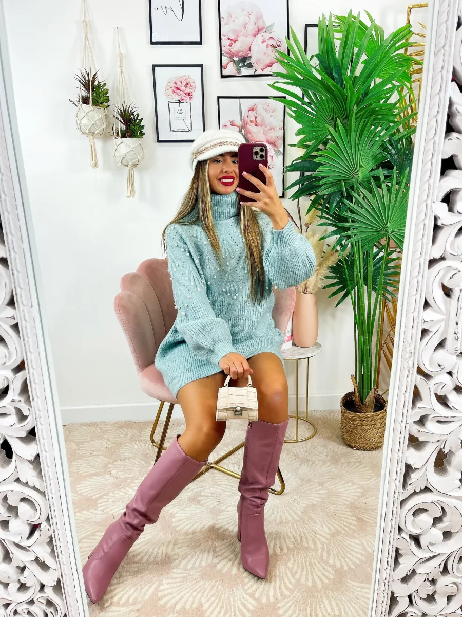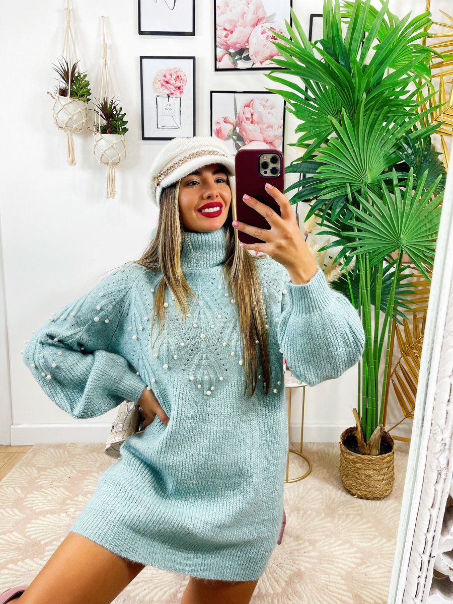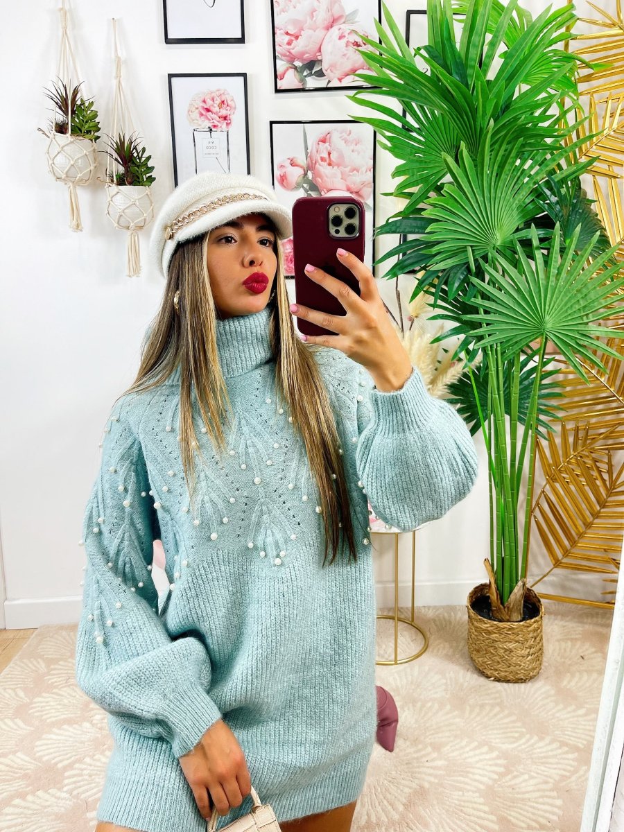 Maxi maglione collo alto con perle Ottima qualità, può essere indossato anche a vestito.