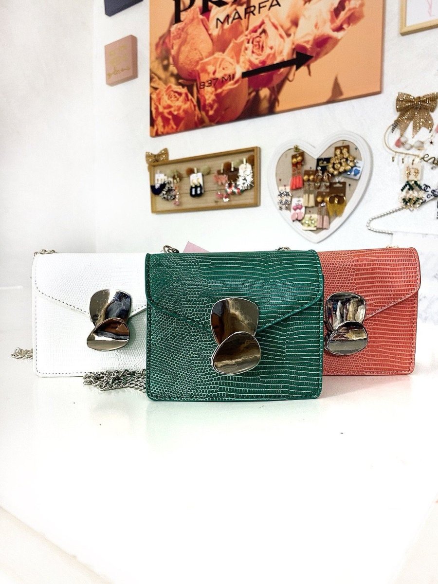 Pochettino in un bellissimo tessuto effetto coccodrillato. La catenina può anche essere messa a marsupio