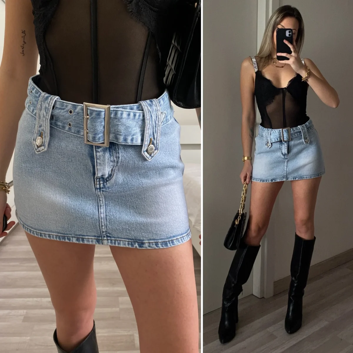Mini in jeans con cintura