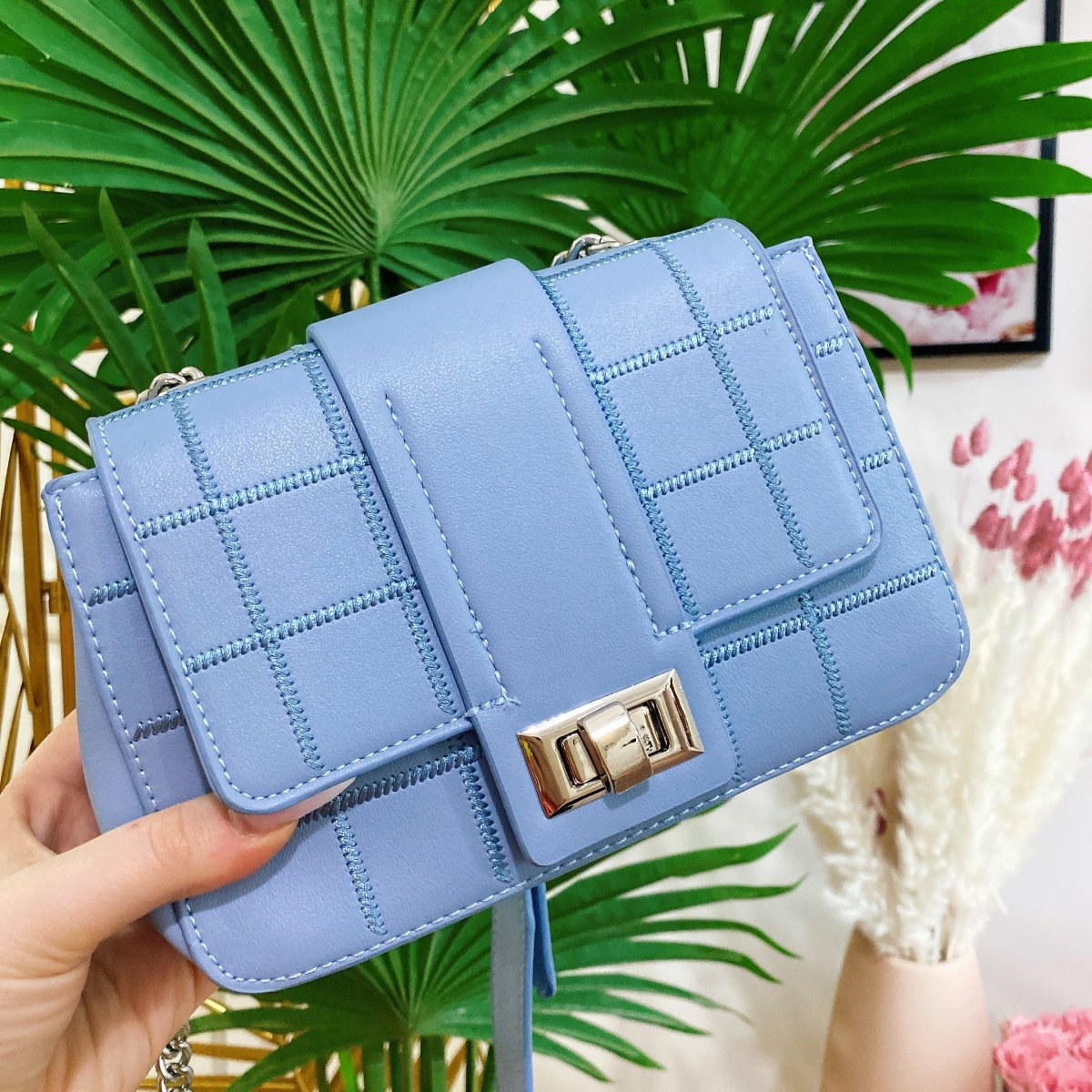 Bag in eco pelle con tracolla inclusa. Dettaglio argento