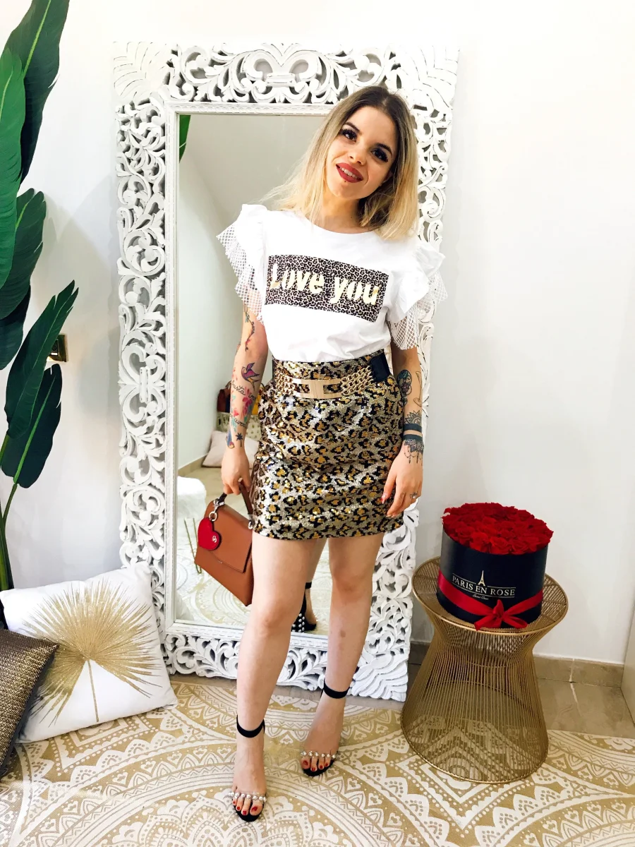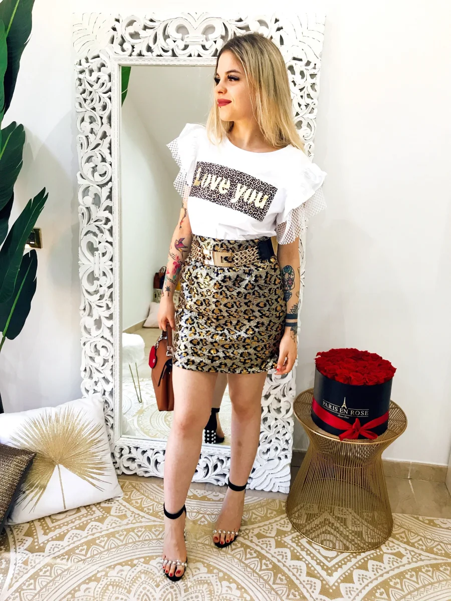 Minigonna con Pailette maculate tessuto non elasticizzato Vestibilità piccola.
