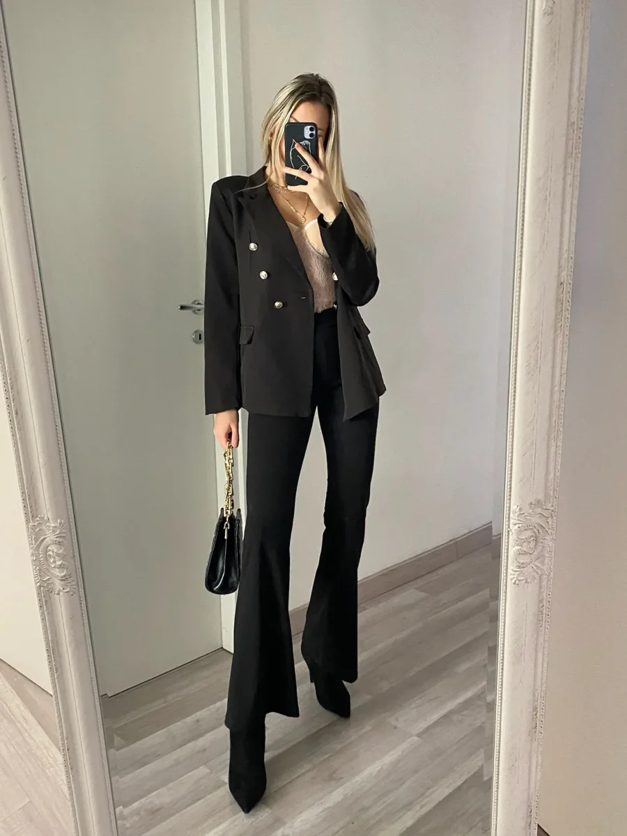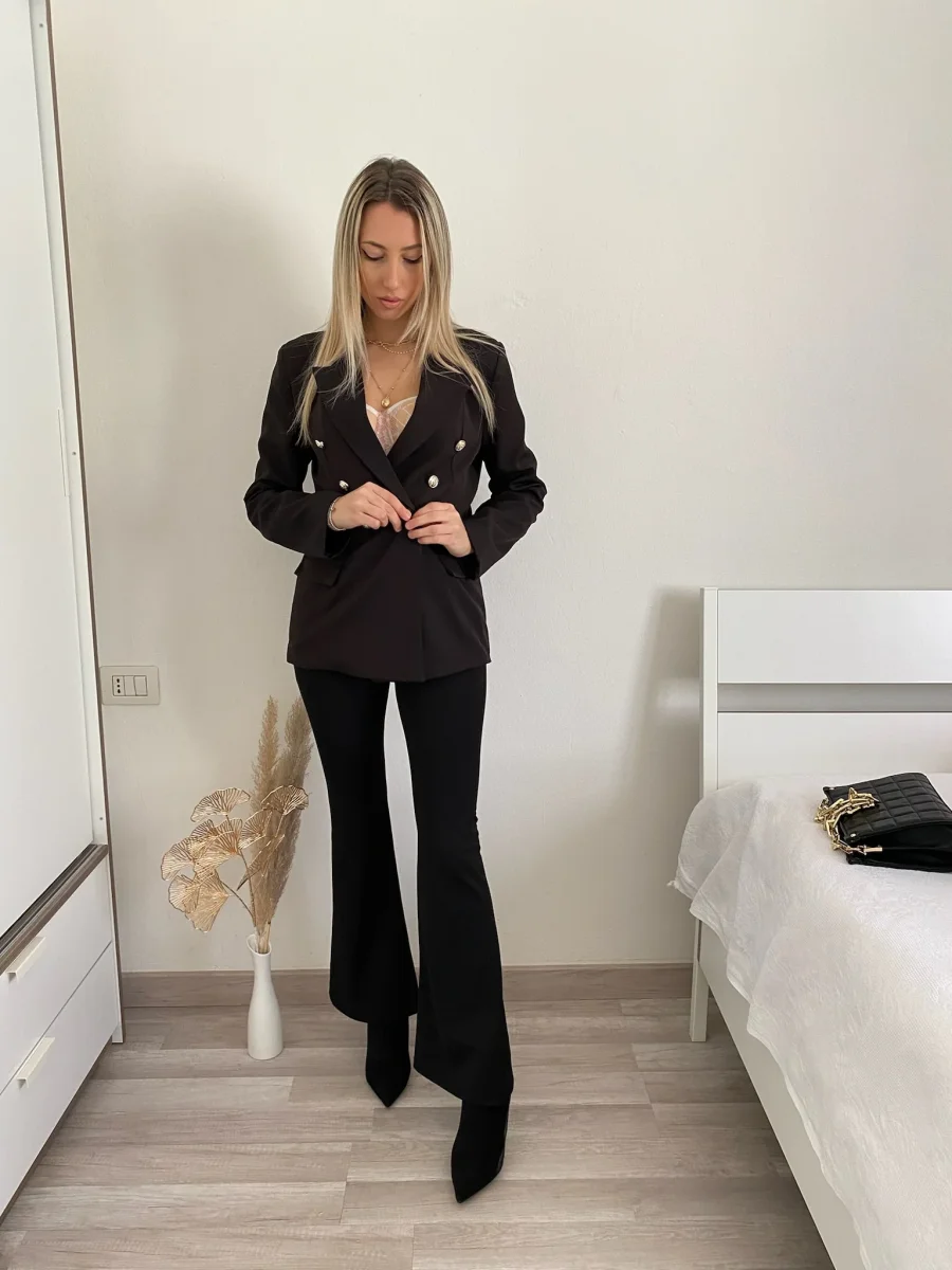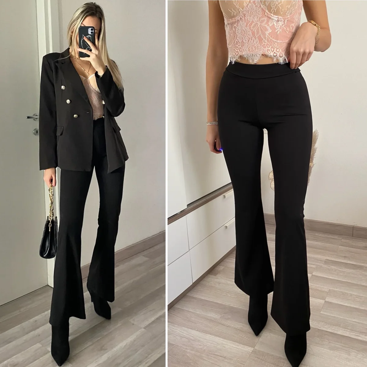 comodissimo pantalone a zampa in tessuto molto elasticizzato.