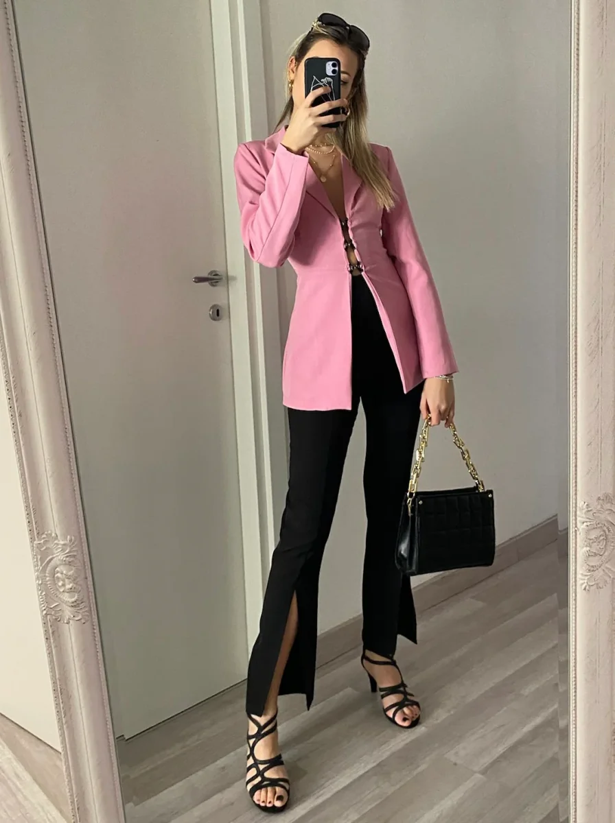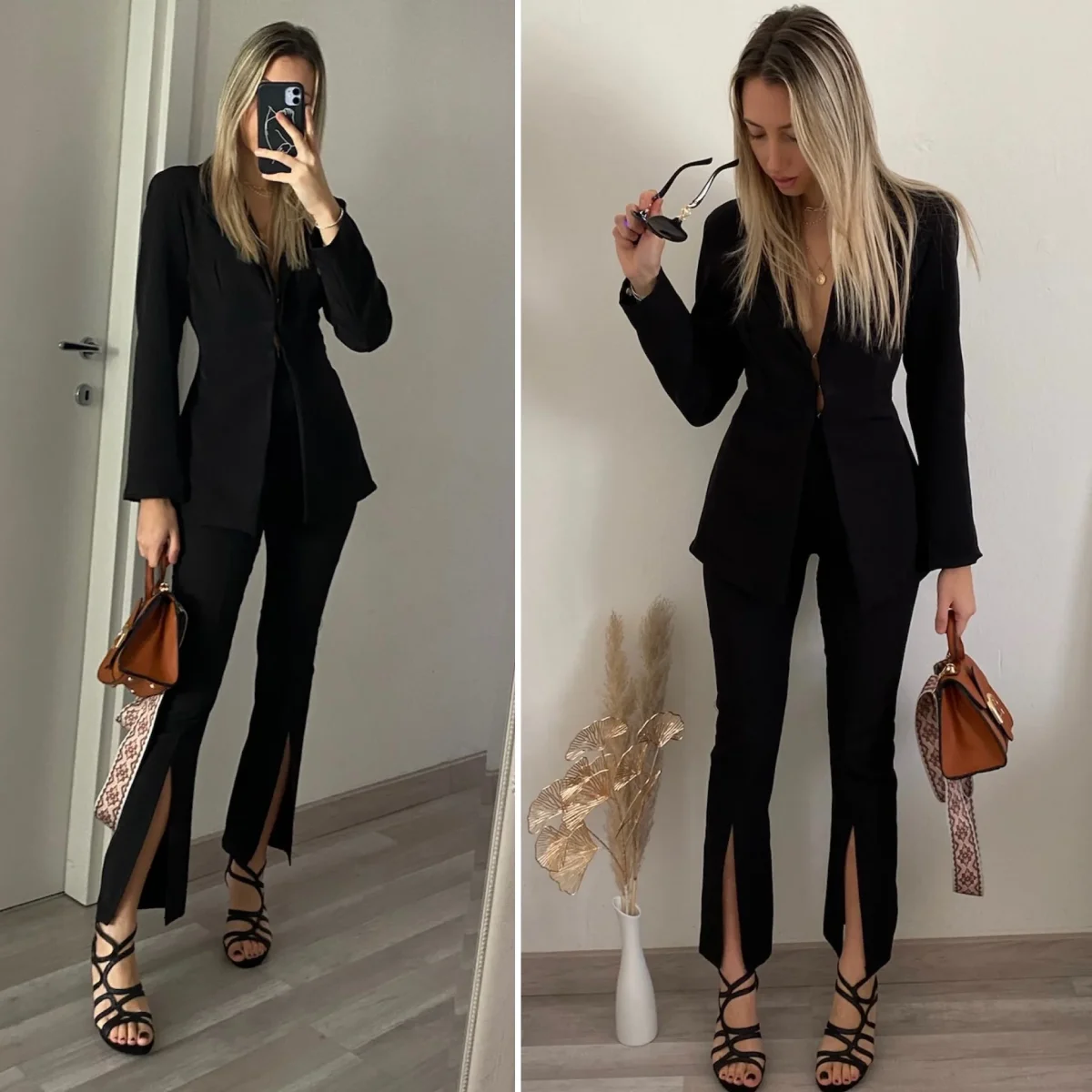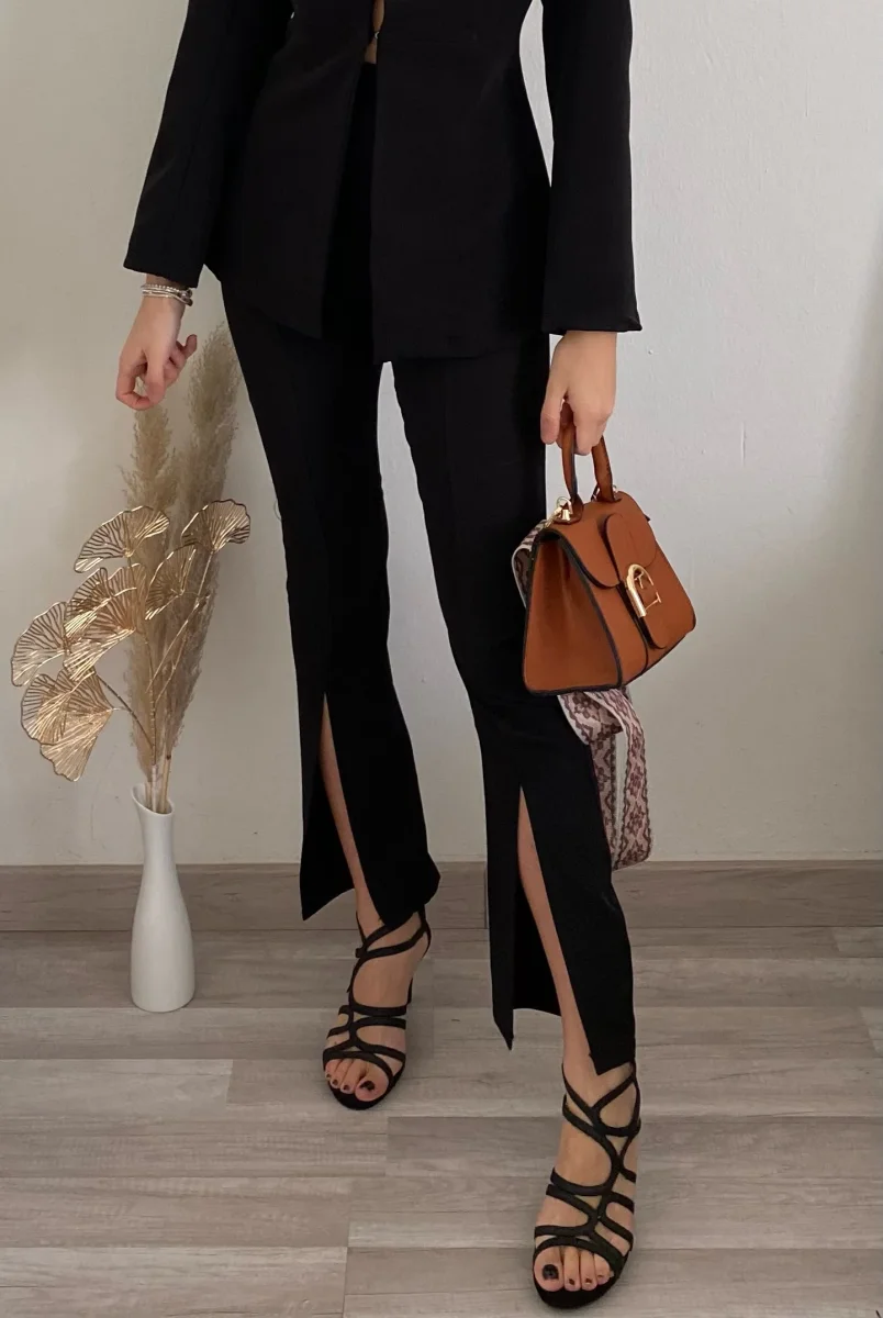 comodissimo pantalone a zampa in tessuto molto elasticizzato. Spacco sul fondo