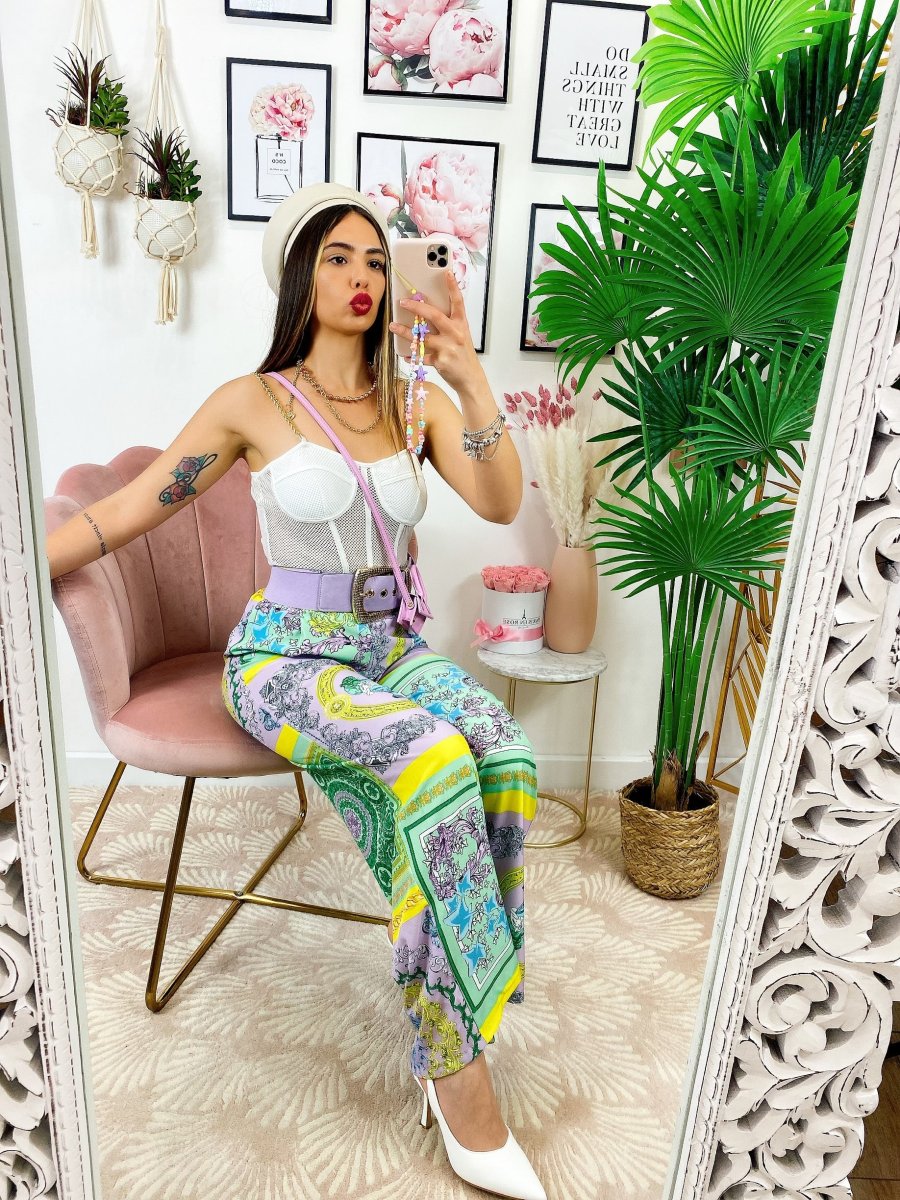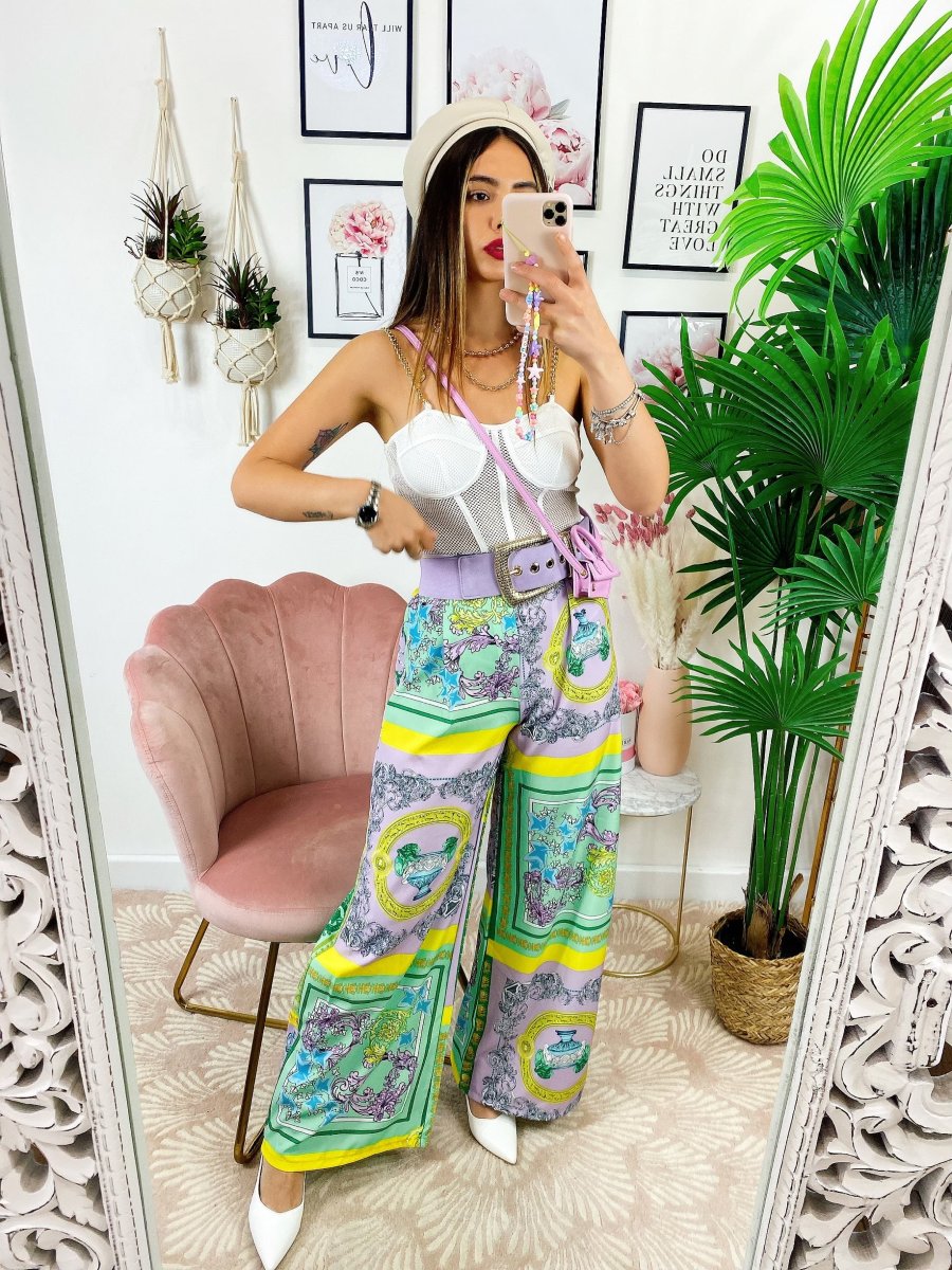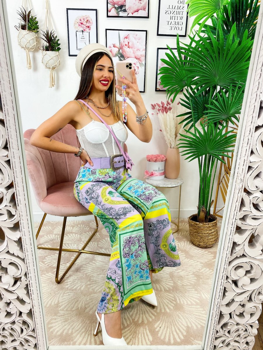 Pantalone a zampa con elastico in vita stampa etnica, comodo e elasticizzato