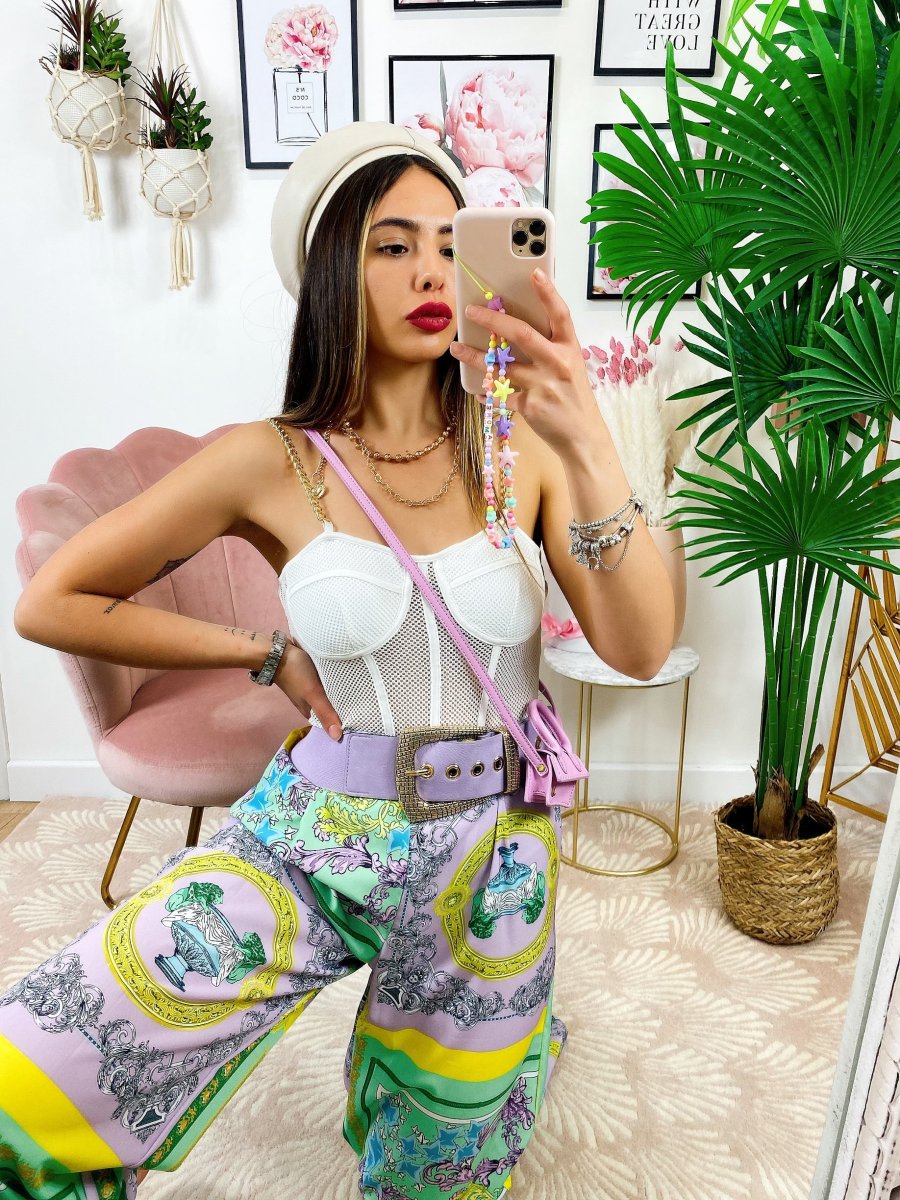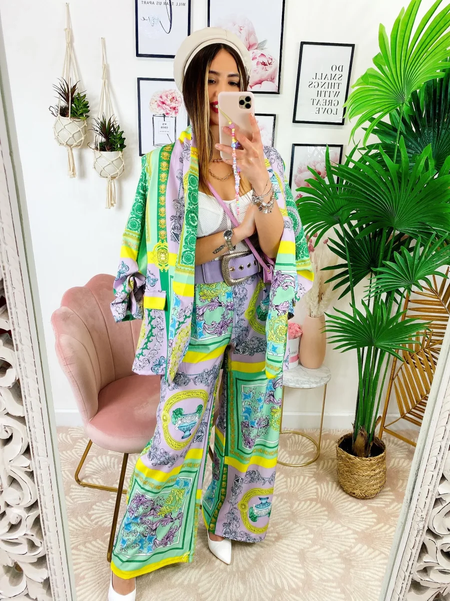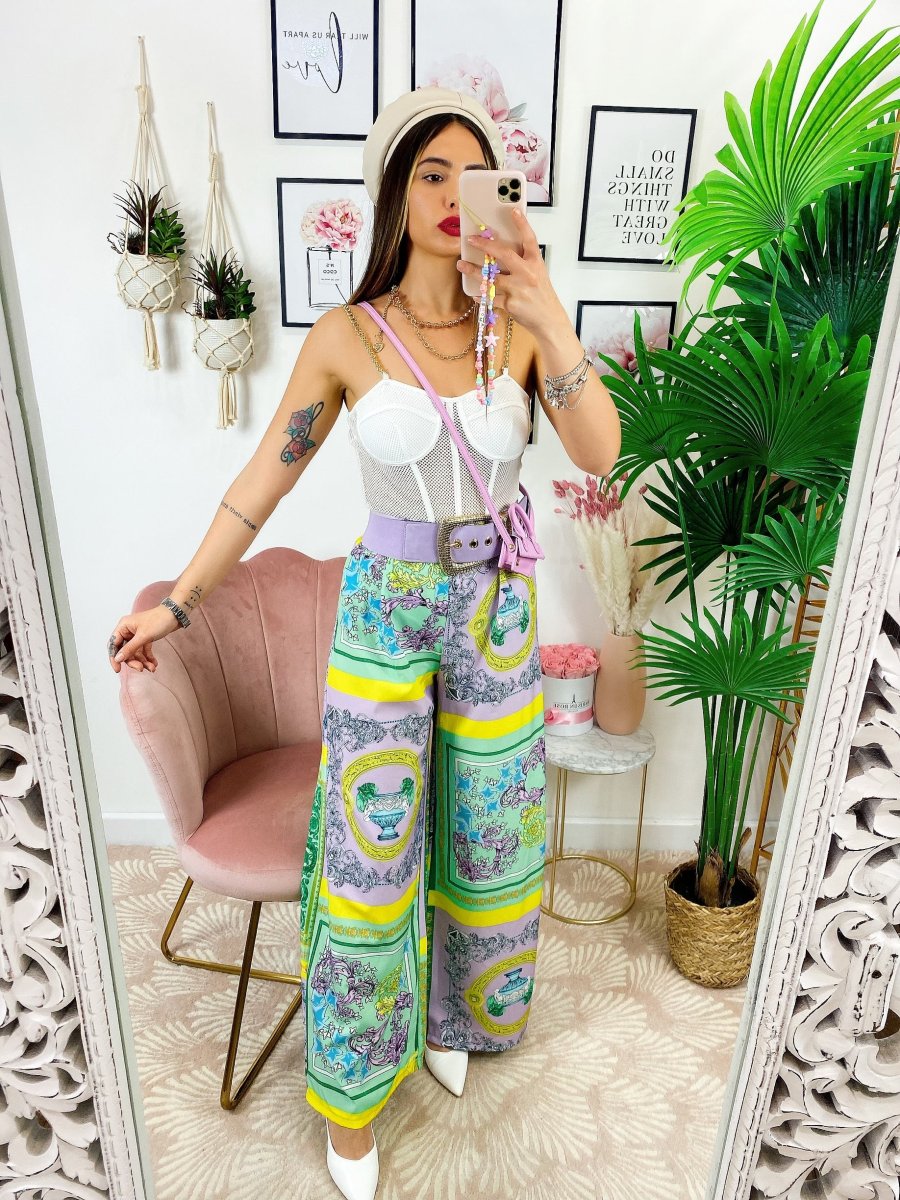 Pantalone a zampa con elastico in vita stampa etnica, comodo e elasticizzato