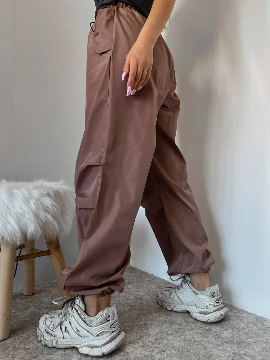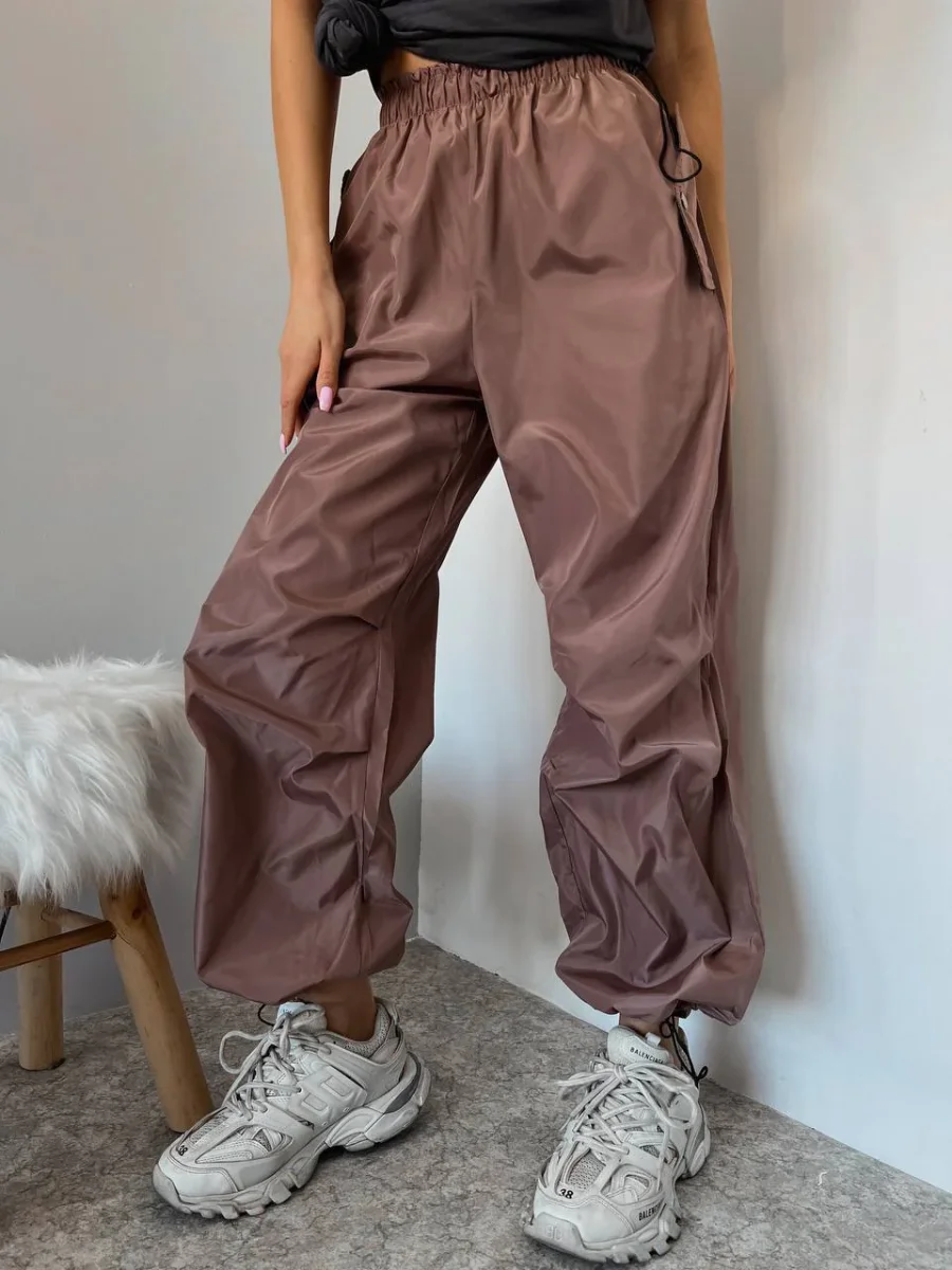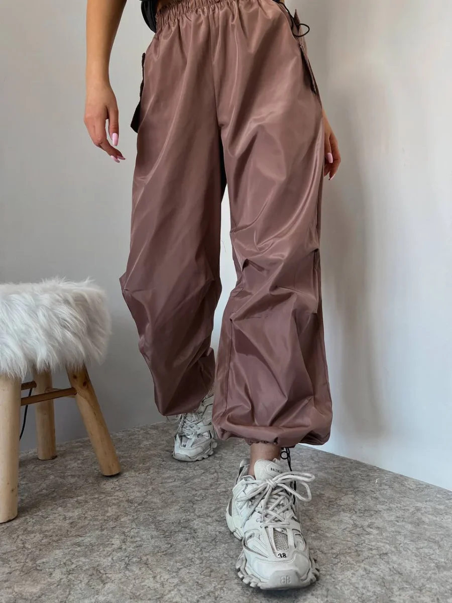 Pantalone cargo con elastico in vita, tessuto acetato.