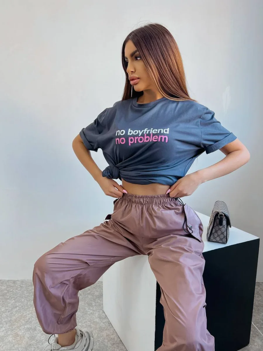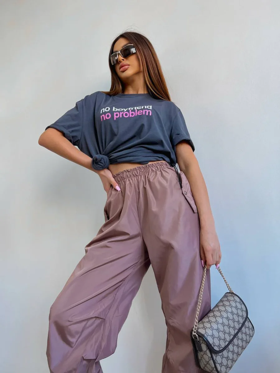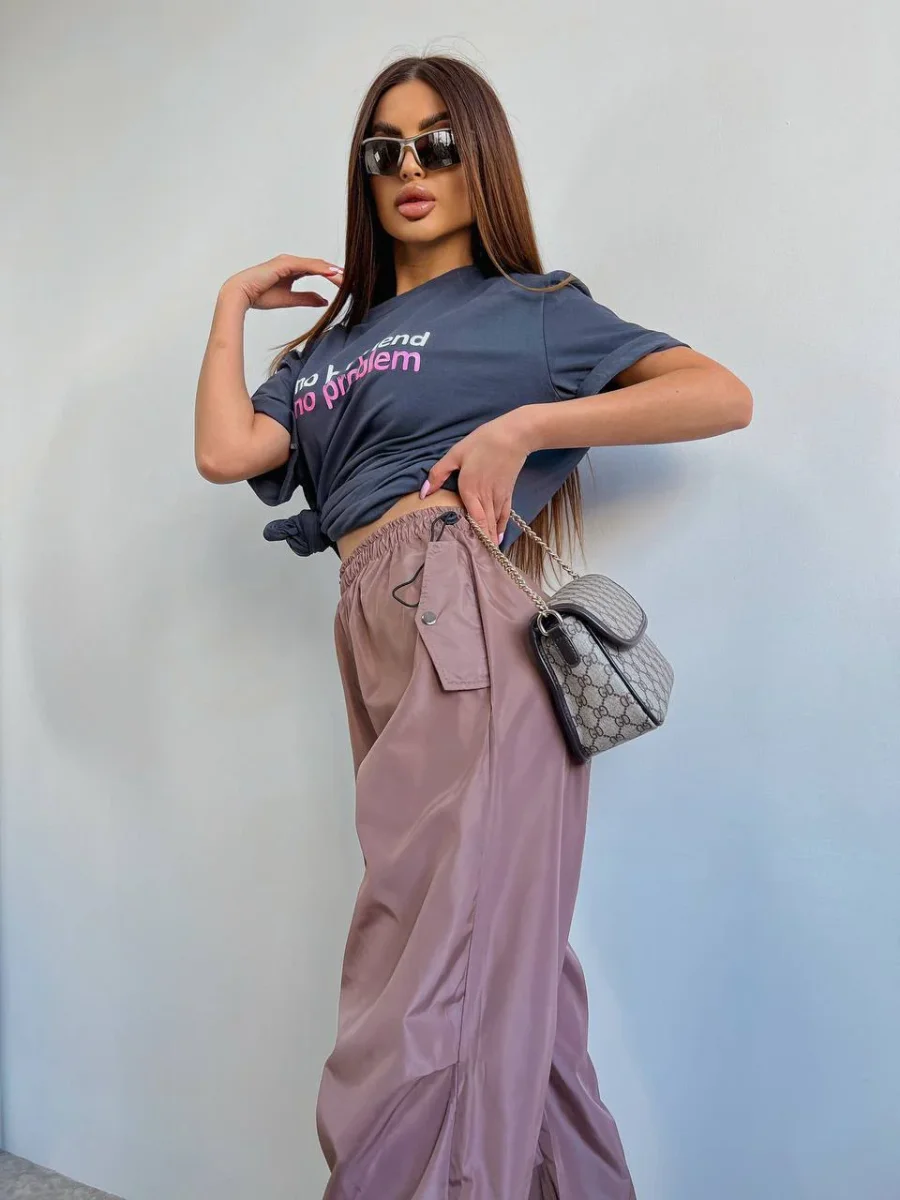 Pantalone cargo con elastico in vita, tessuto acetato.