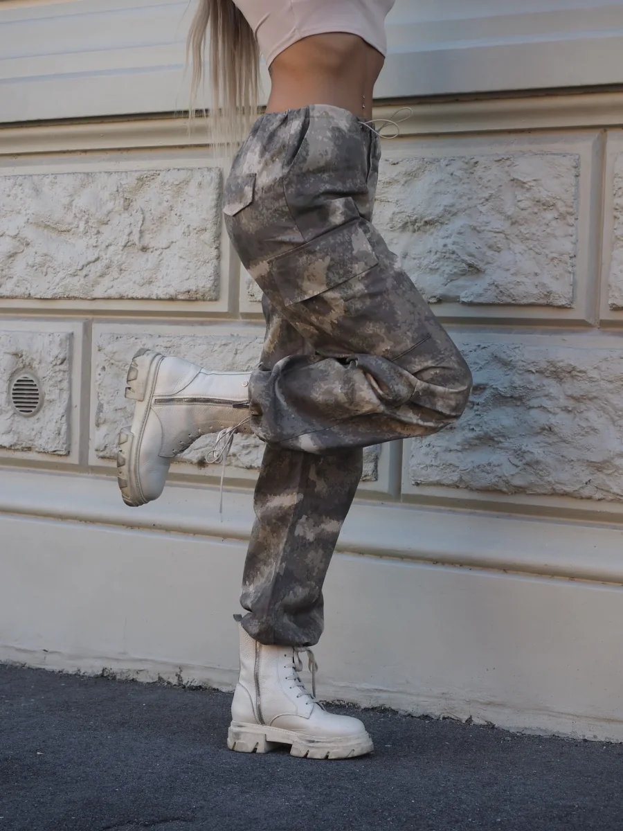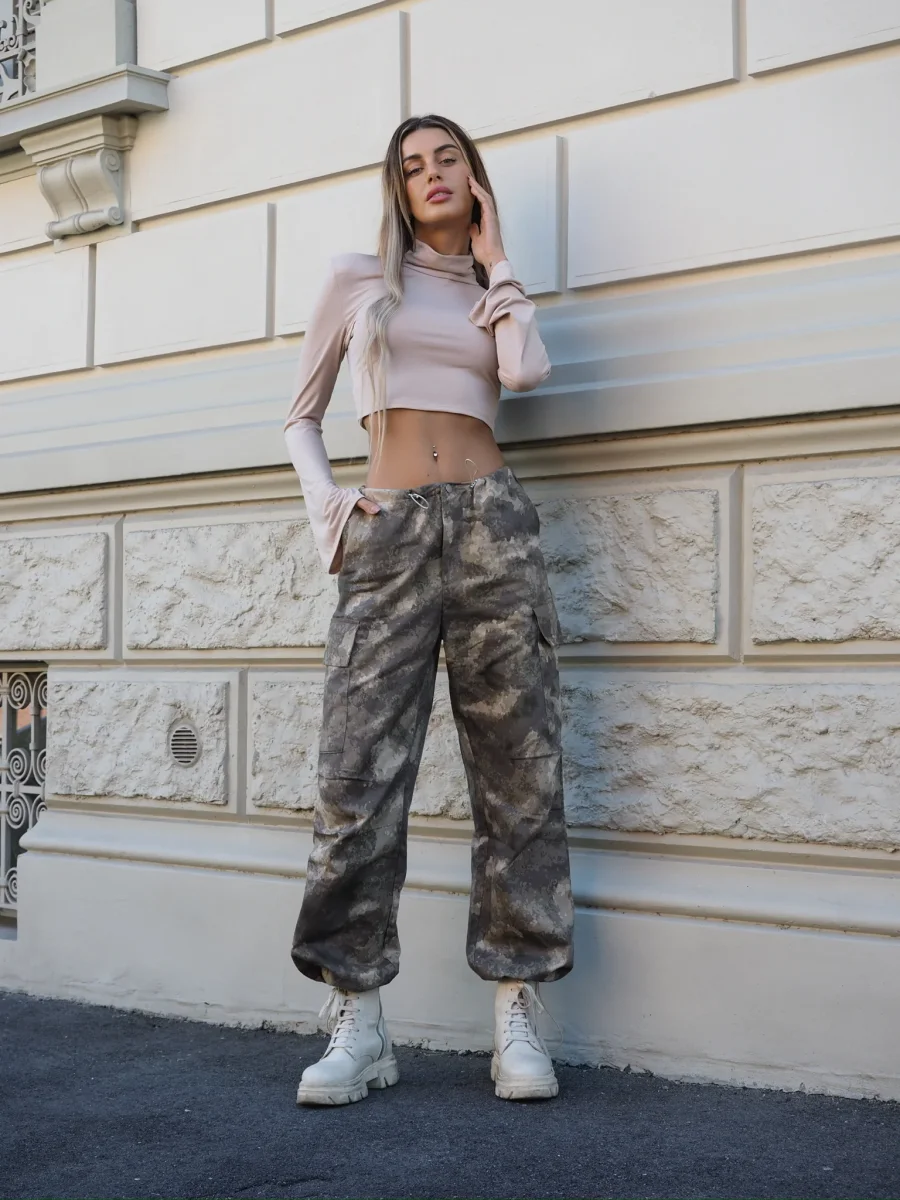 Pantalone cargo military beige
