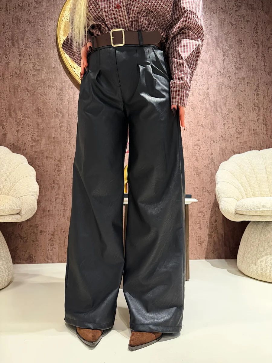 ✨ Dettagli: cintura inclusa, vita elasticizzata sul retro, finitura effetto pelle liscia