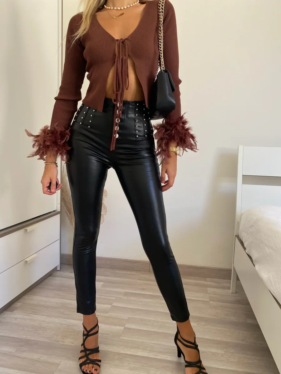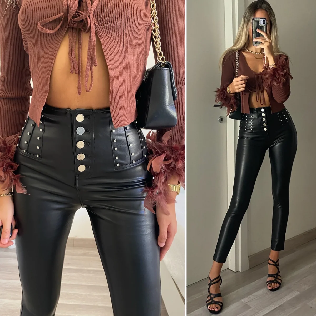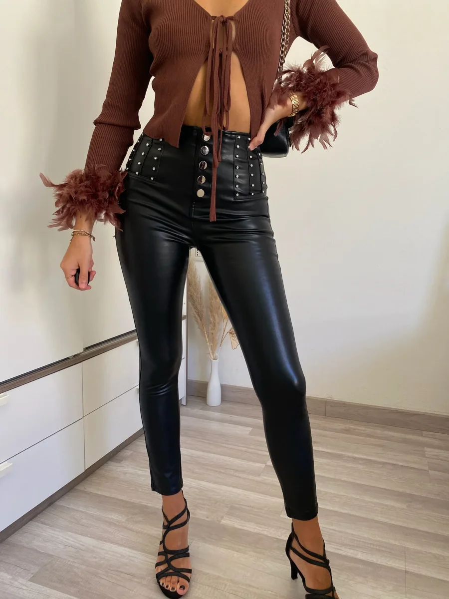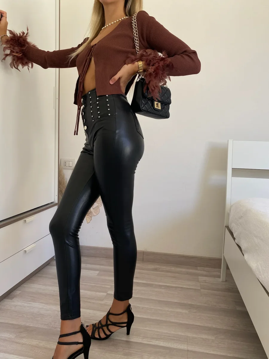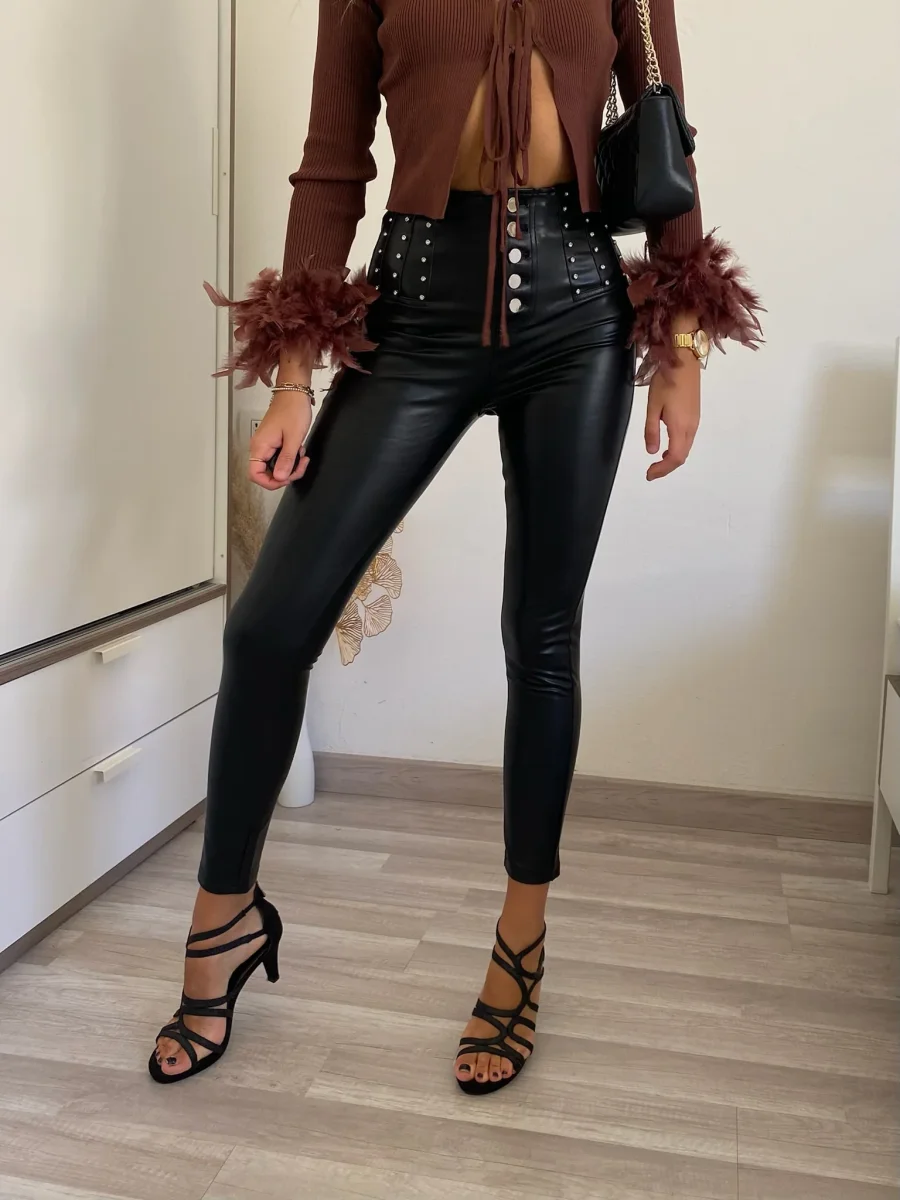 Pantalone in ecopelle dalla vestibilità ridotta.