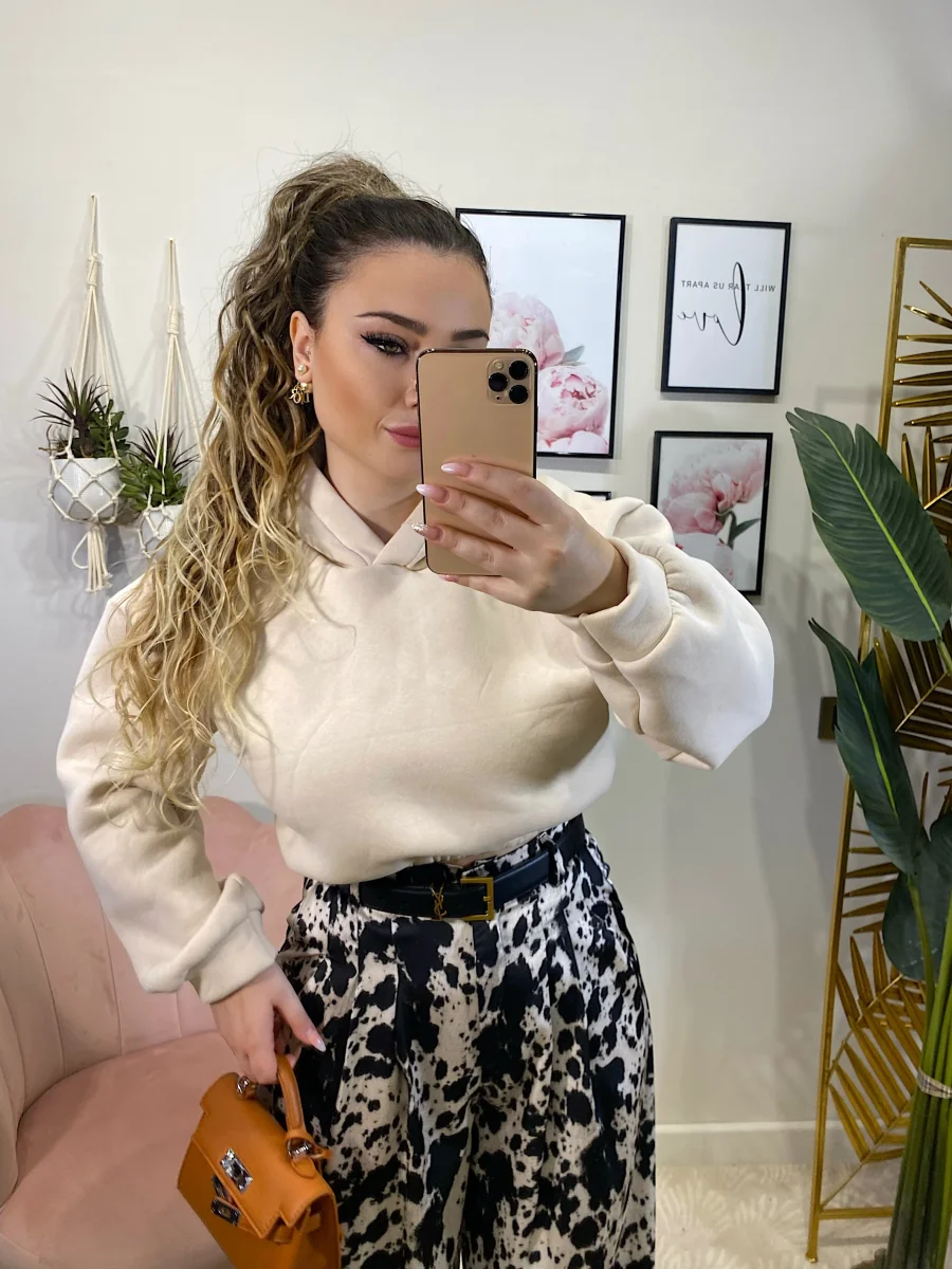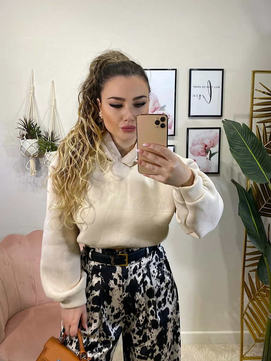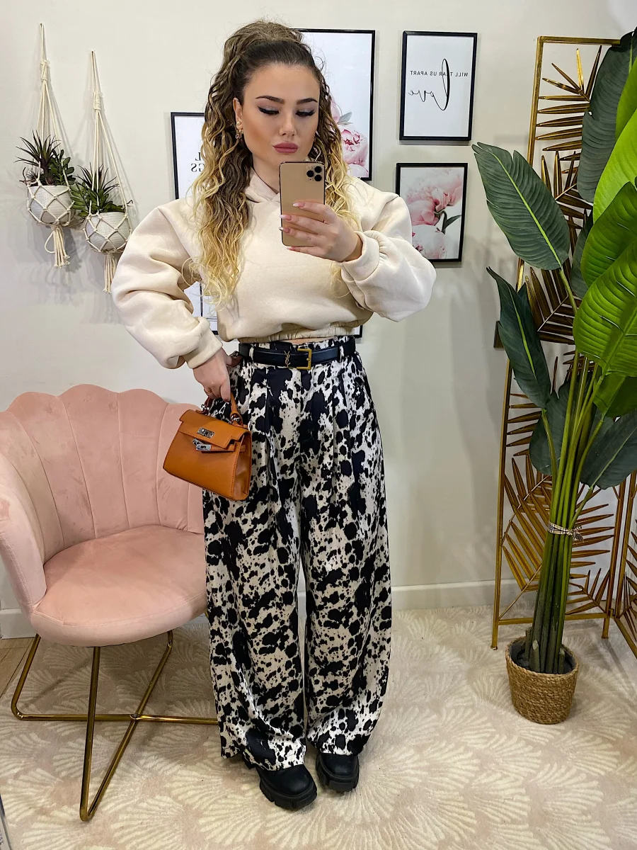 Pantalone in doppio satin a fantasia, con elastico in vita e penche.