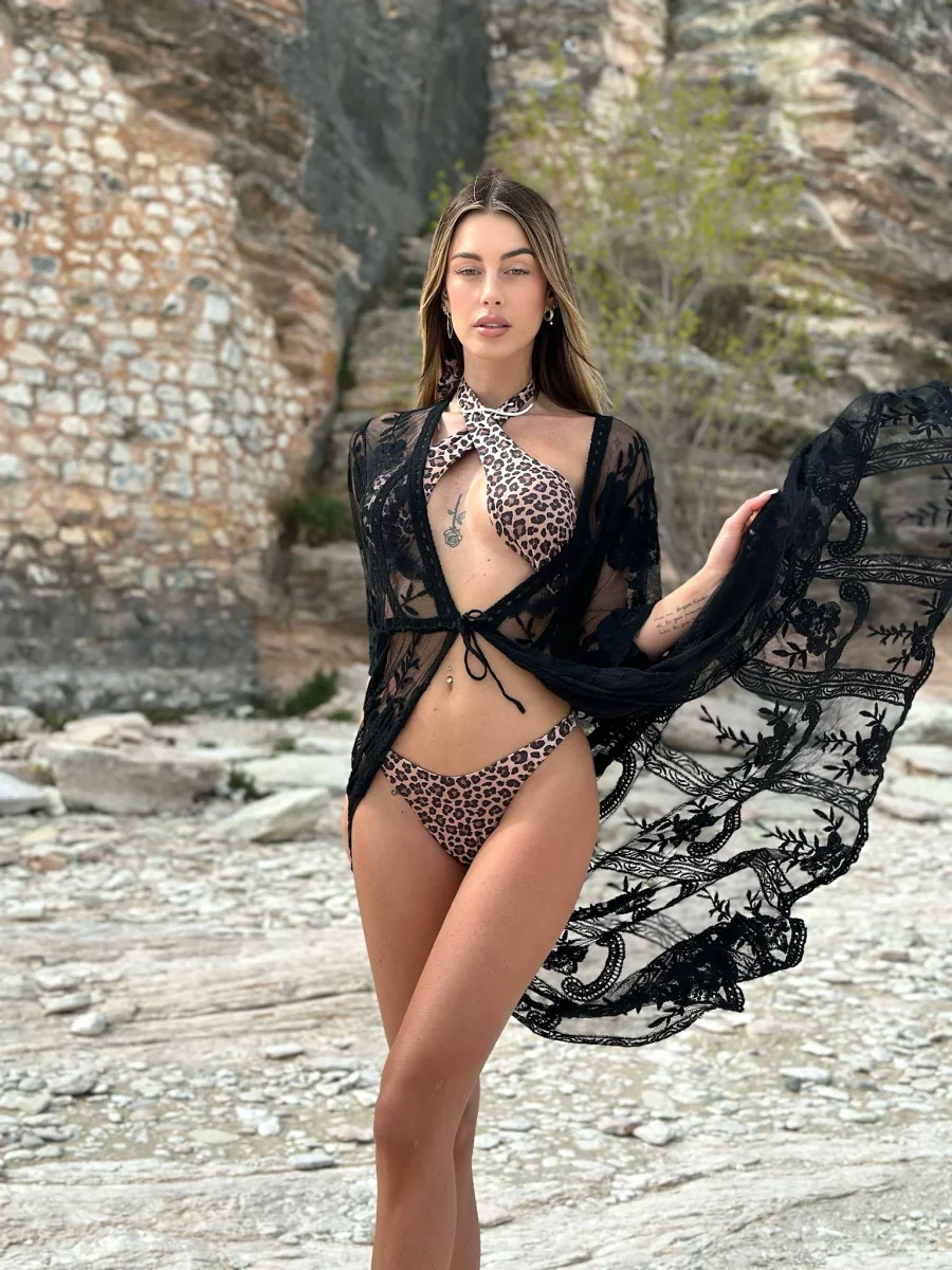 Parei mare o copricostume in pizzo con cintura.