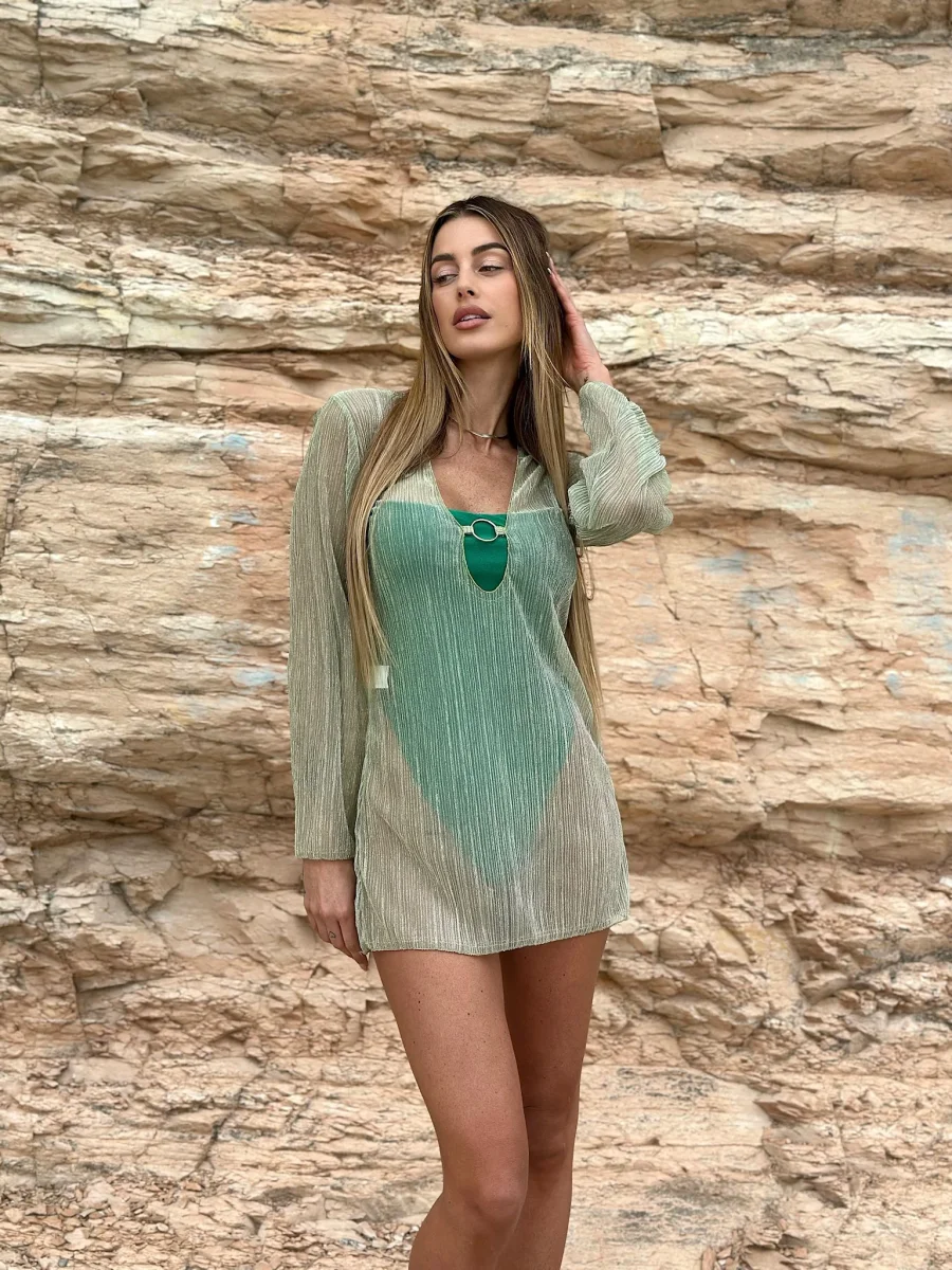 Pareo mare corro Con anello sul davanti, dettaglio luminoso in lurex