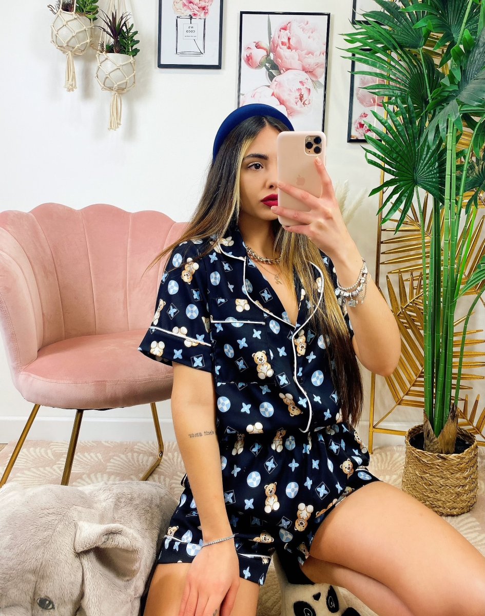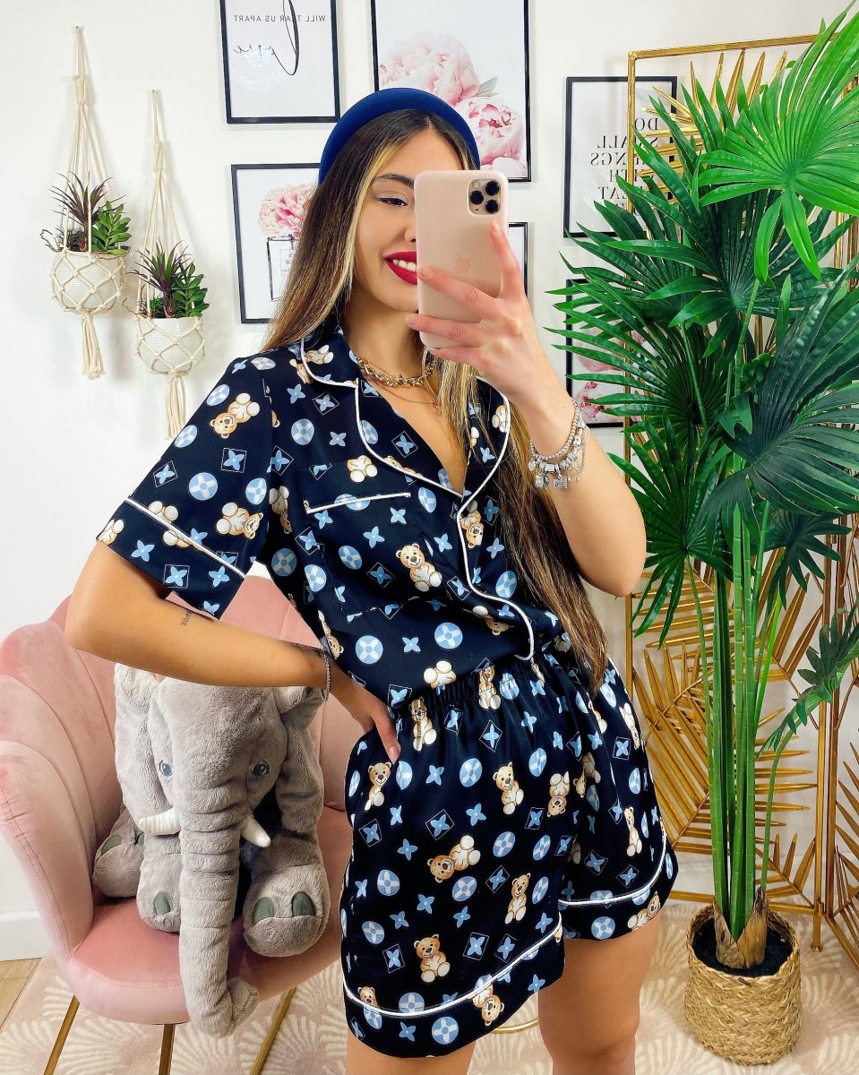 Pigiamino con orsetti In tessuto liscio e elasticizzato, il top per stare a casa.
