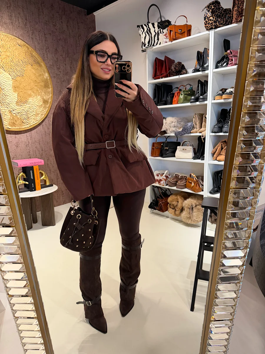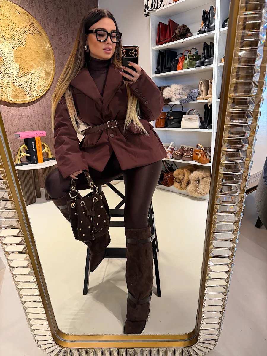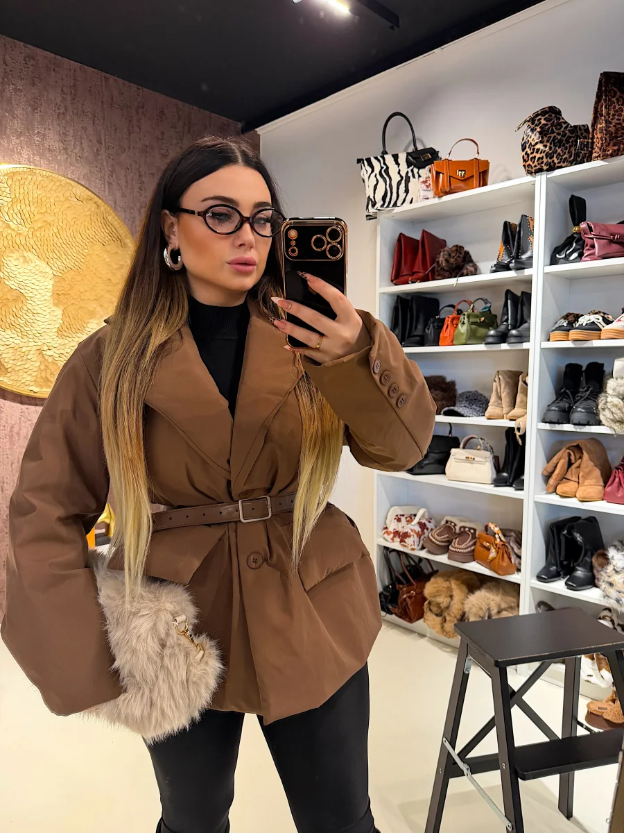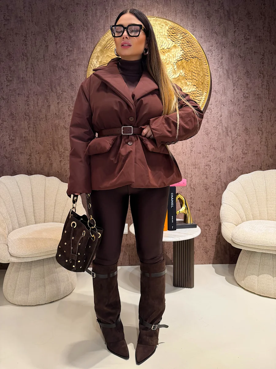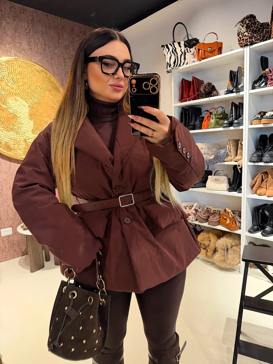 Piumino lungo color bordeaux rosato con cintura in vita per valorizzare la silhouette. Caldo, leggero e super femminile, presenta un ampio cappuccio e una linea elegante perfetta per i look invernali chic. Unisce comfort e stile in un capo raffinato firmato RA Boutique, ideale per affrontare la stagione fredda con un tocco glamour.