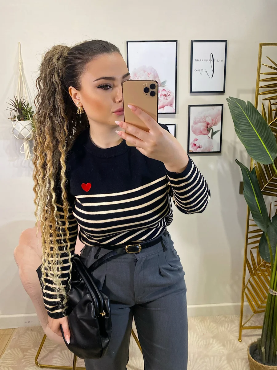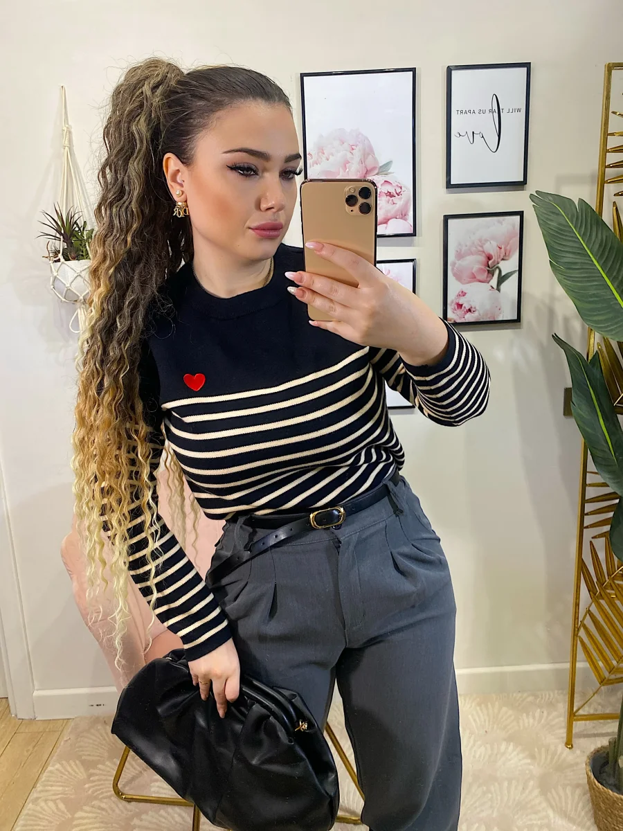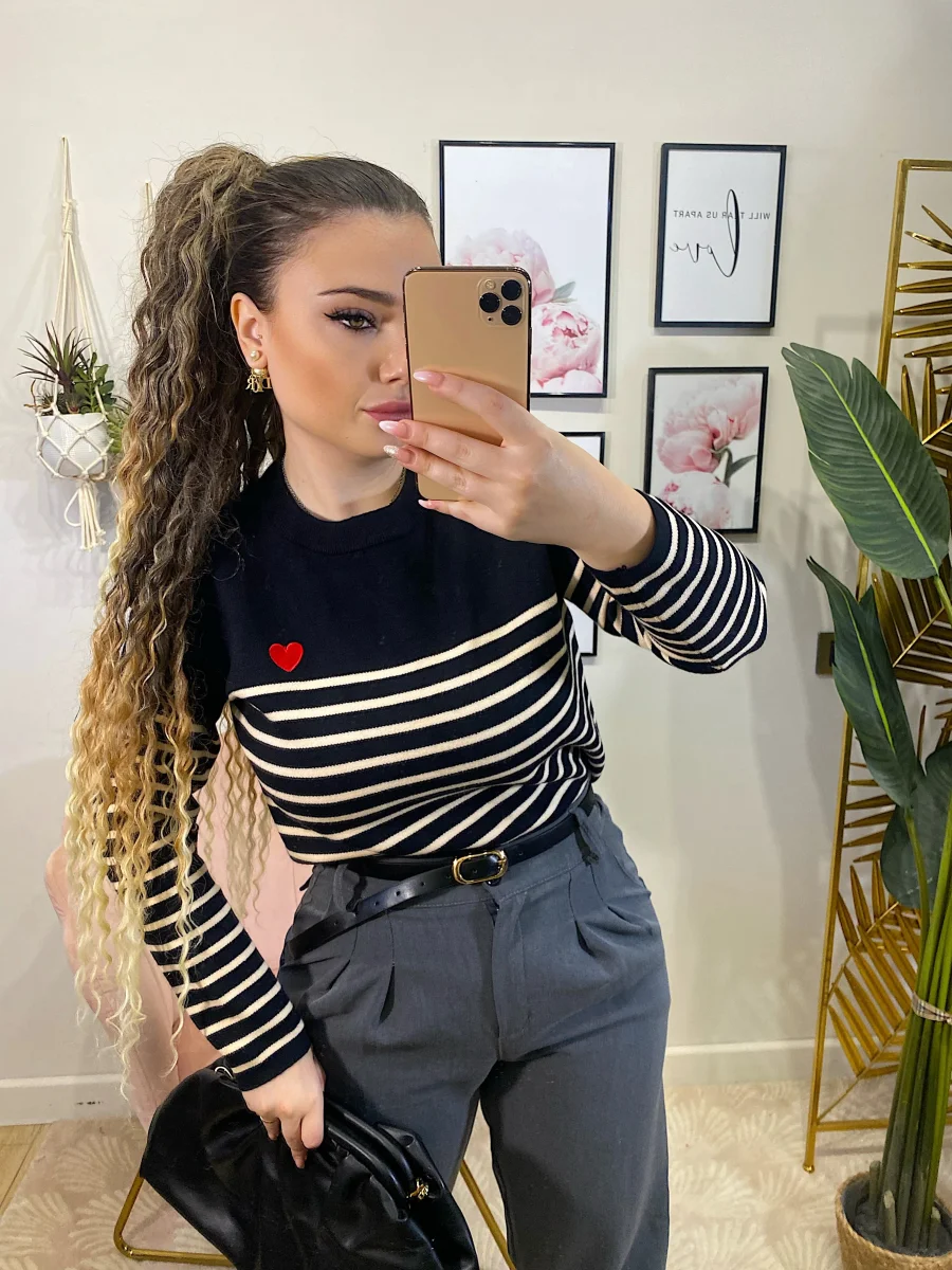 Maglioncino a righe molto morbido e elasticizzato con righine e cuore rosso