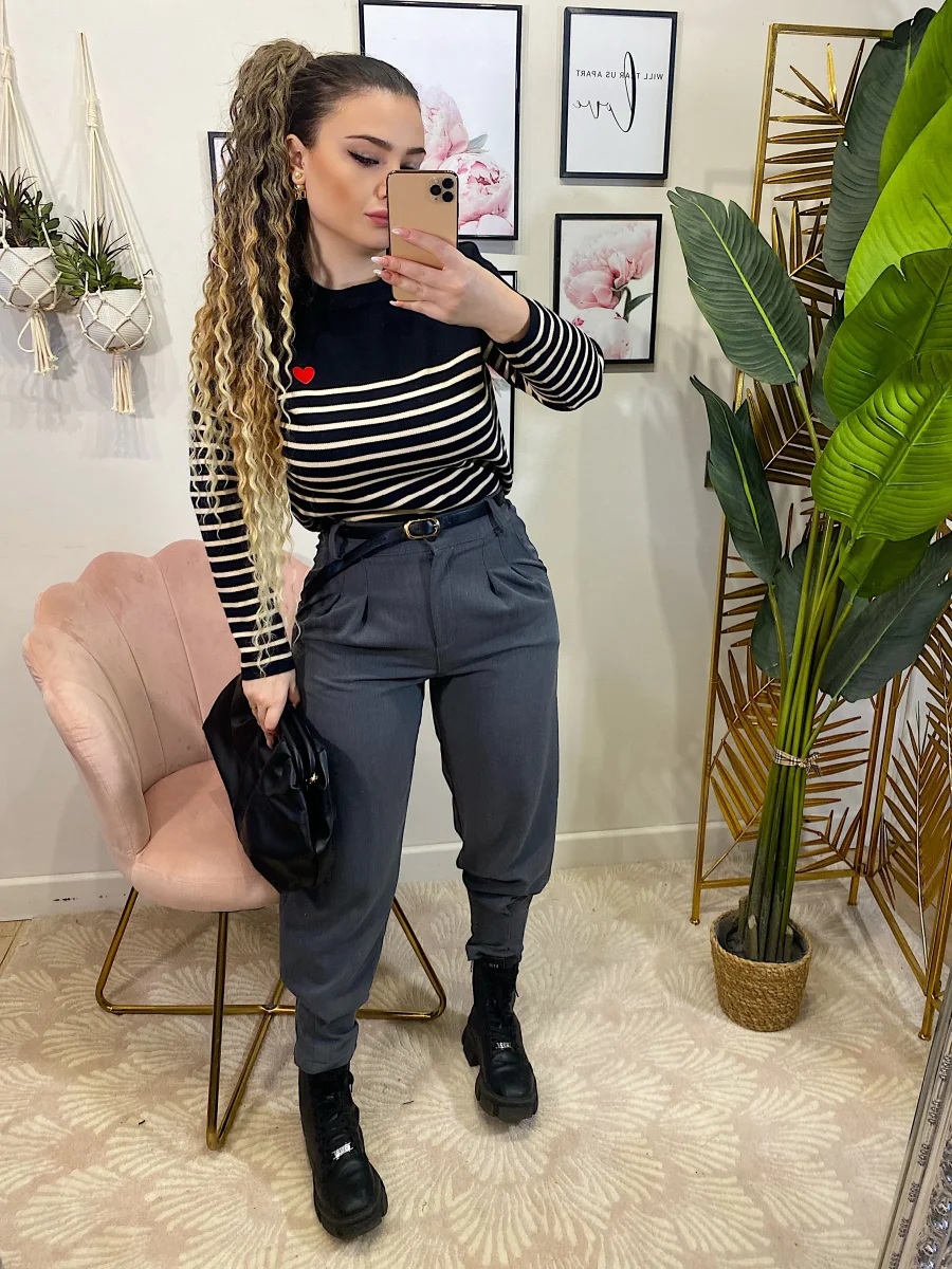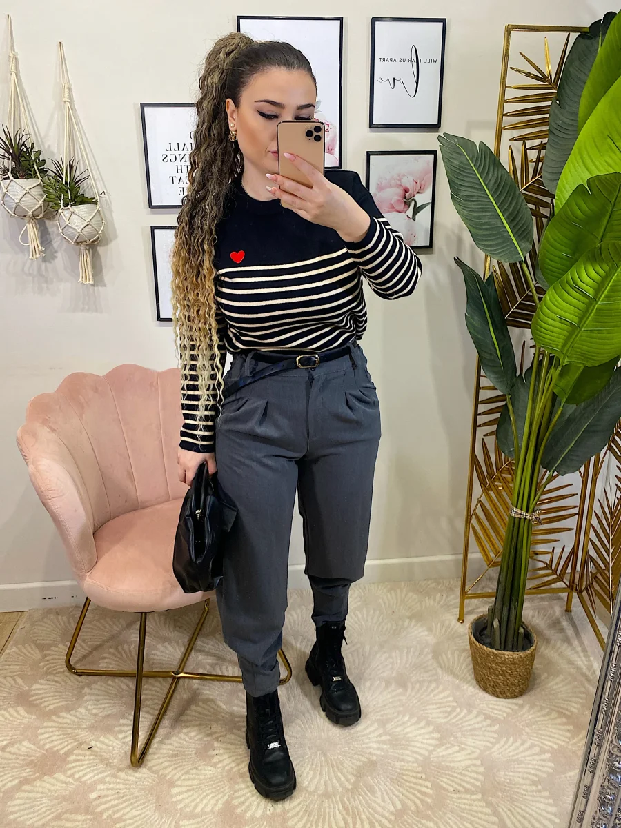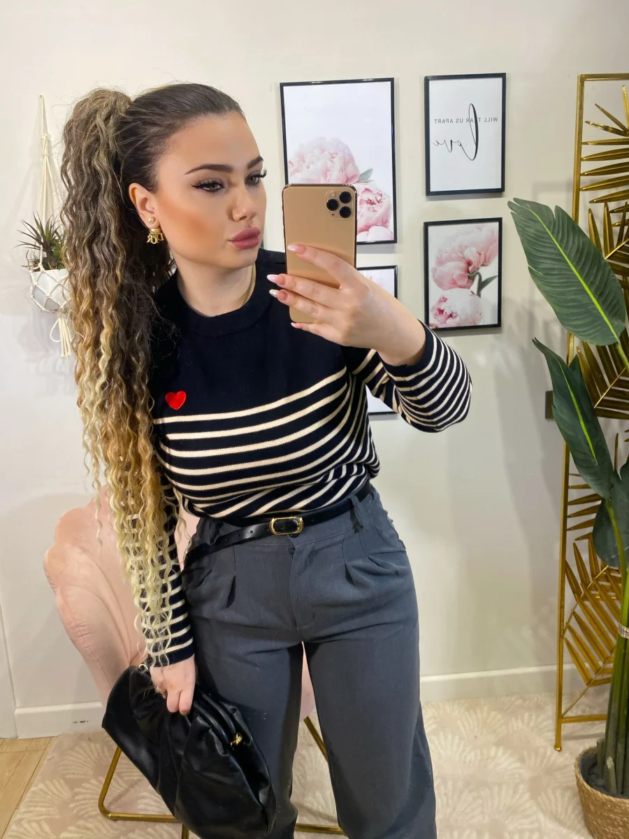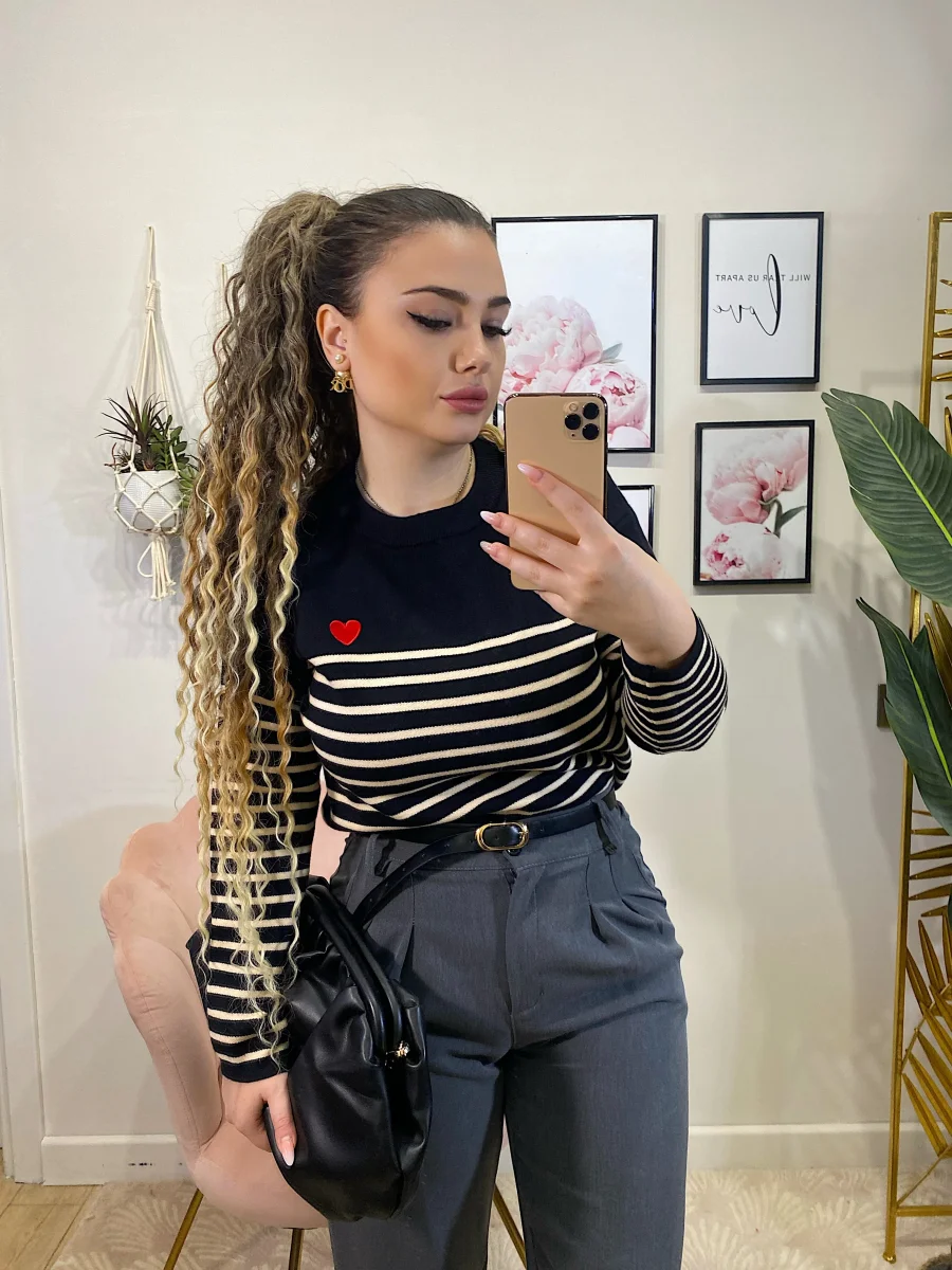 Maglioncino a righe molto morbido e elasticizzato con righine e cuore rosso
