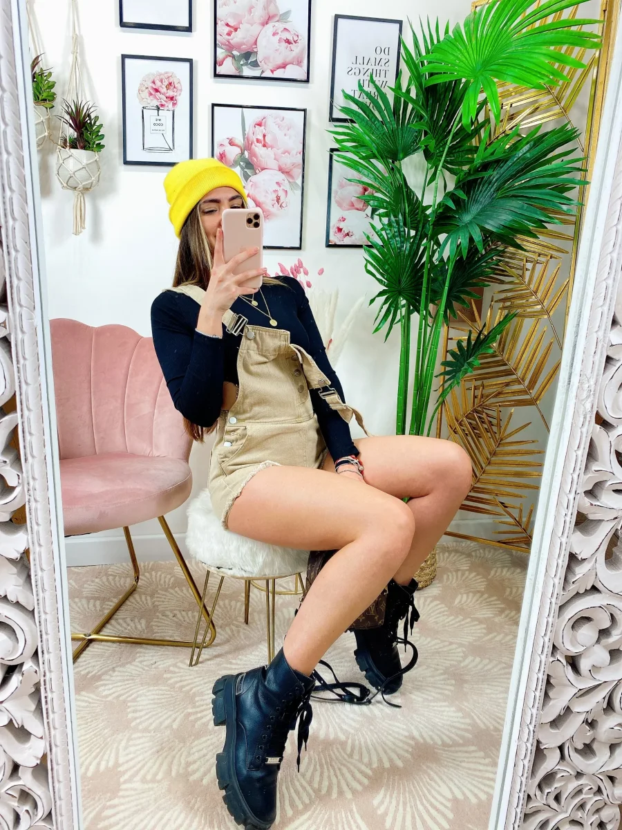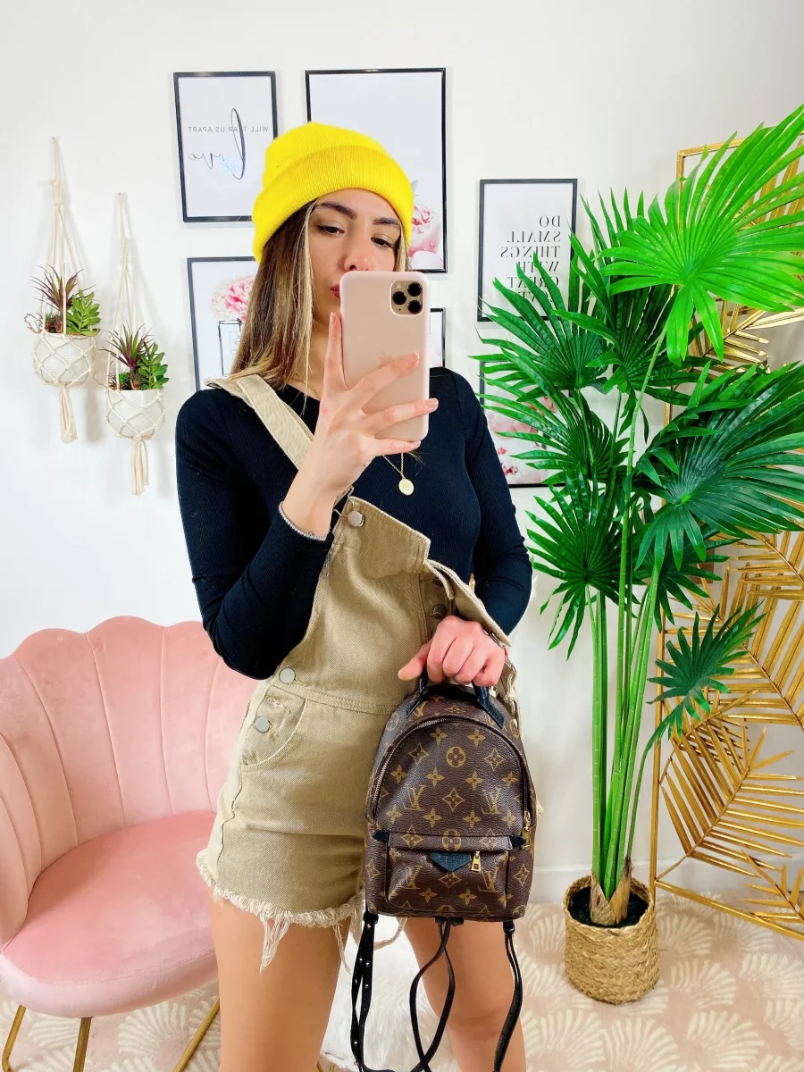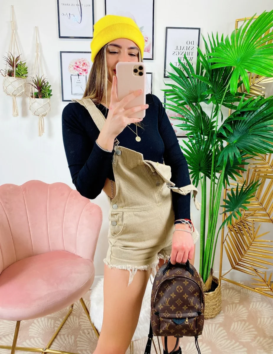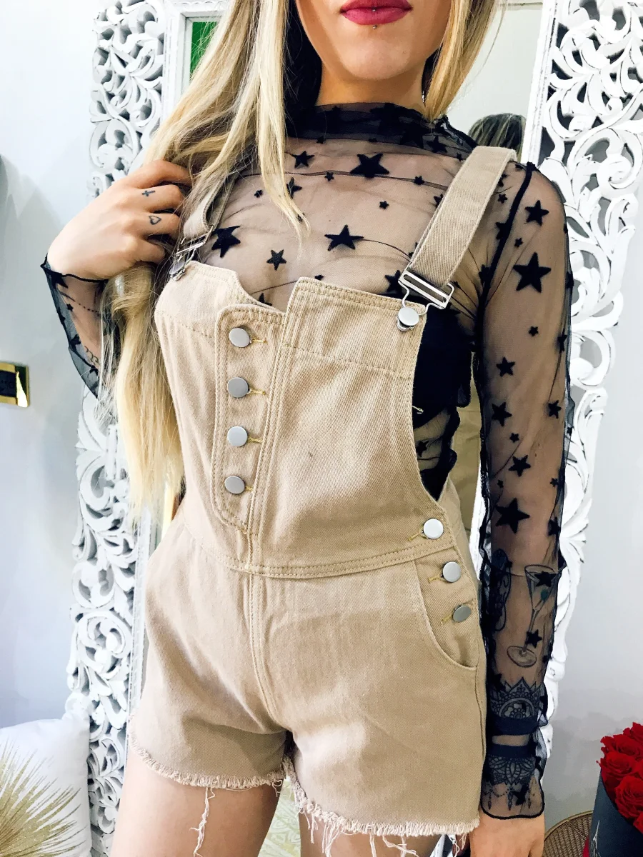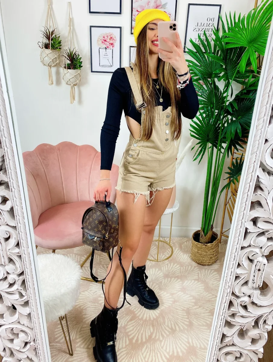 Salopette in jeans con short sfrangiato. Vestibilità piccola
