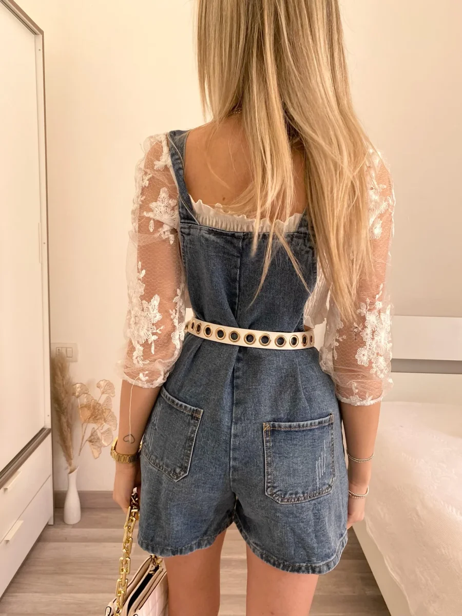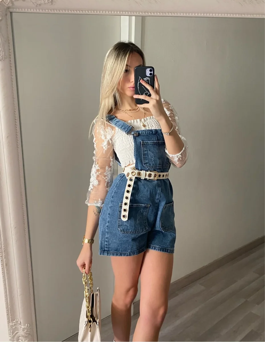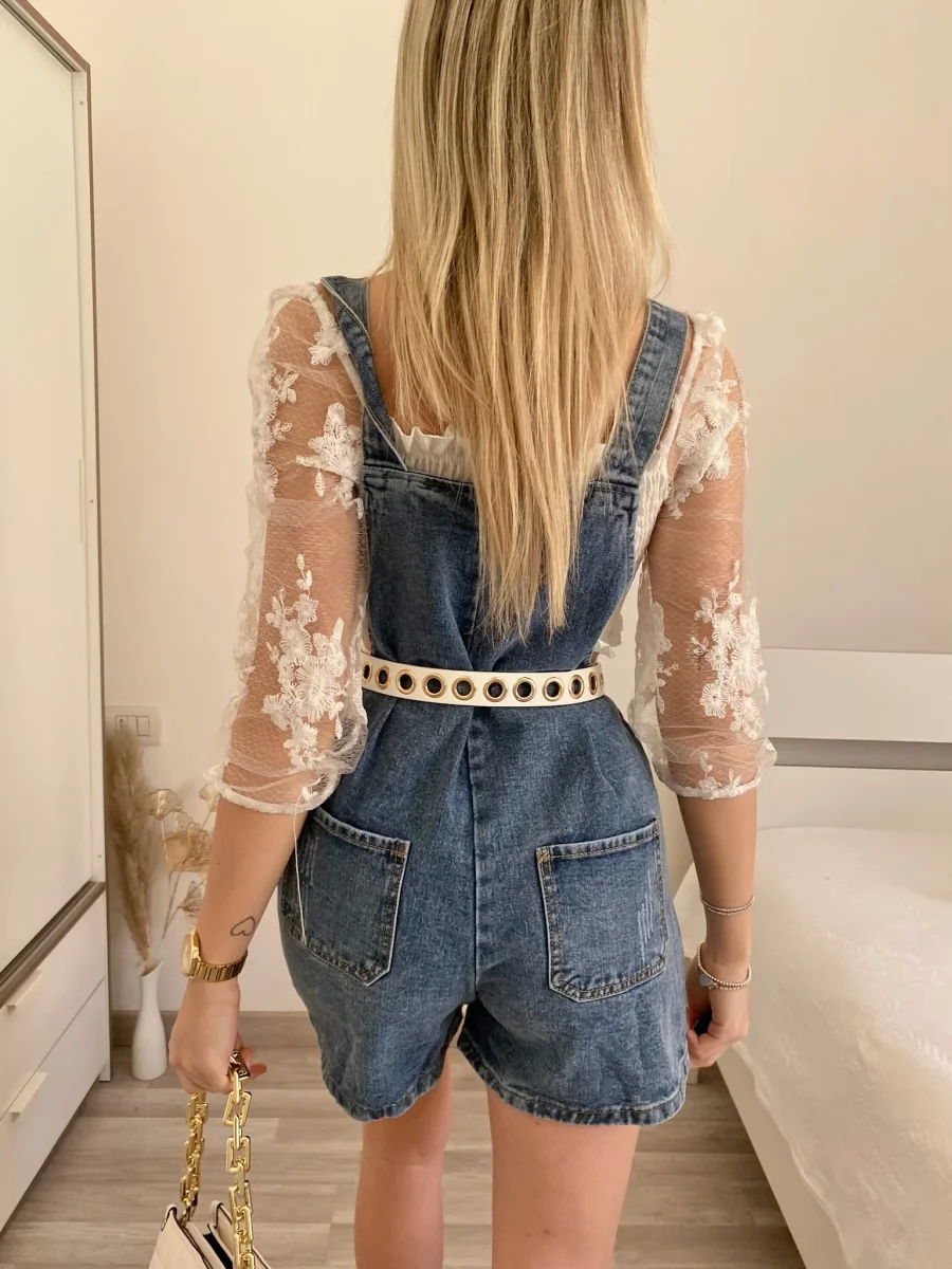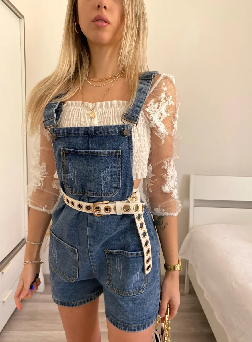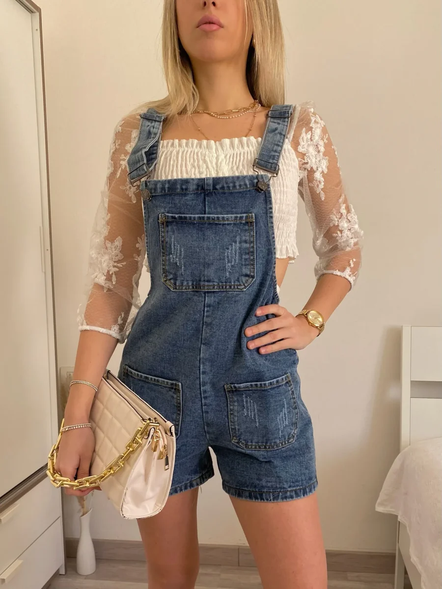 Salopette con bretelle regolabili e pantaloncino. Perfetta con qualsiasi cosa nel sotto.