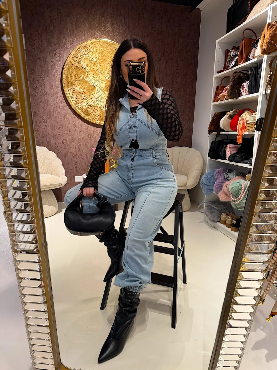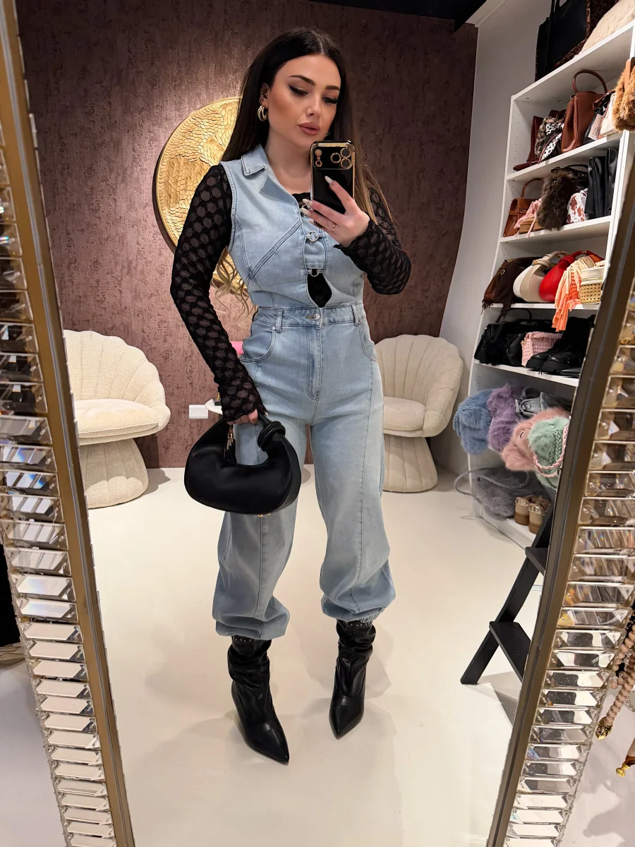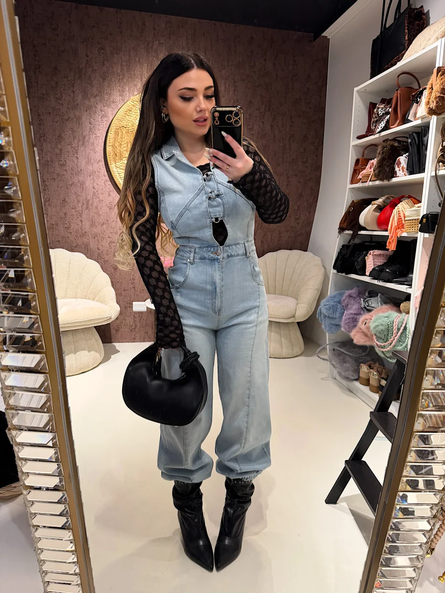 La salopette in jeans con bottoni offre un design pratico e versatile, adatta per vari look e occasioni. Realizzata in denim resistente, garantisce durata nel tempo e comfort. I bottoni aggiungono un elemento funzionale, consentendo una facile regolazione per una vestibilità ottimale.