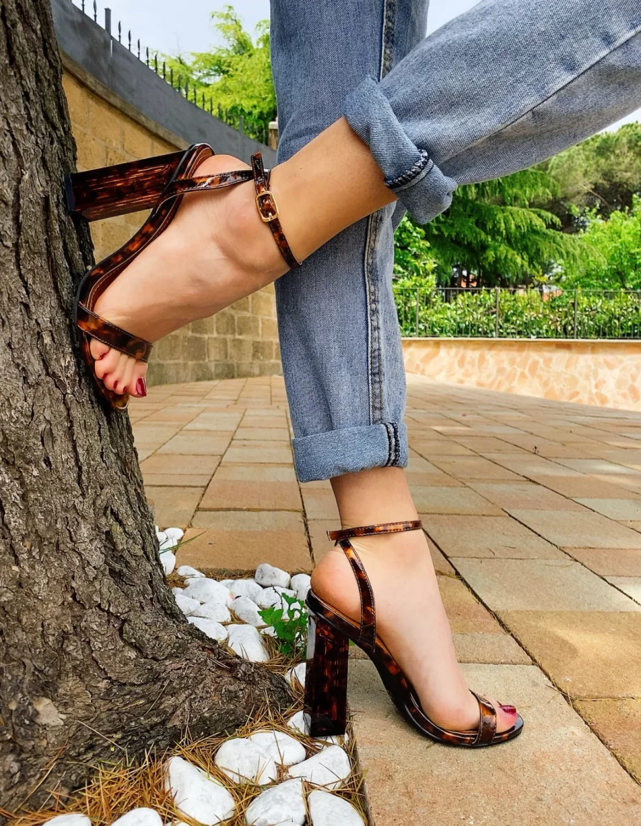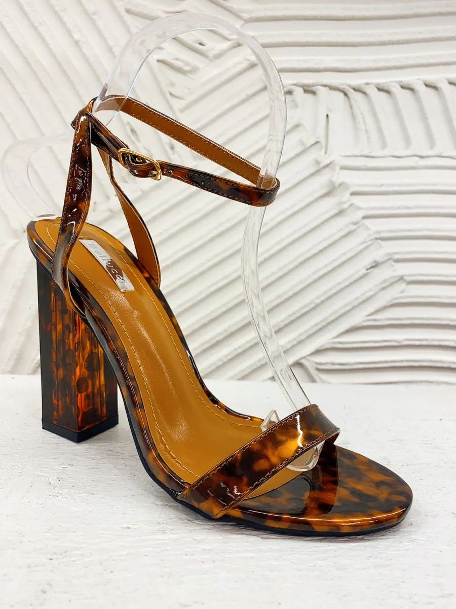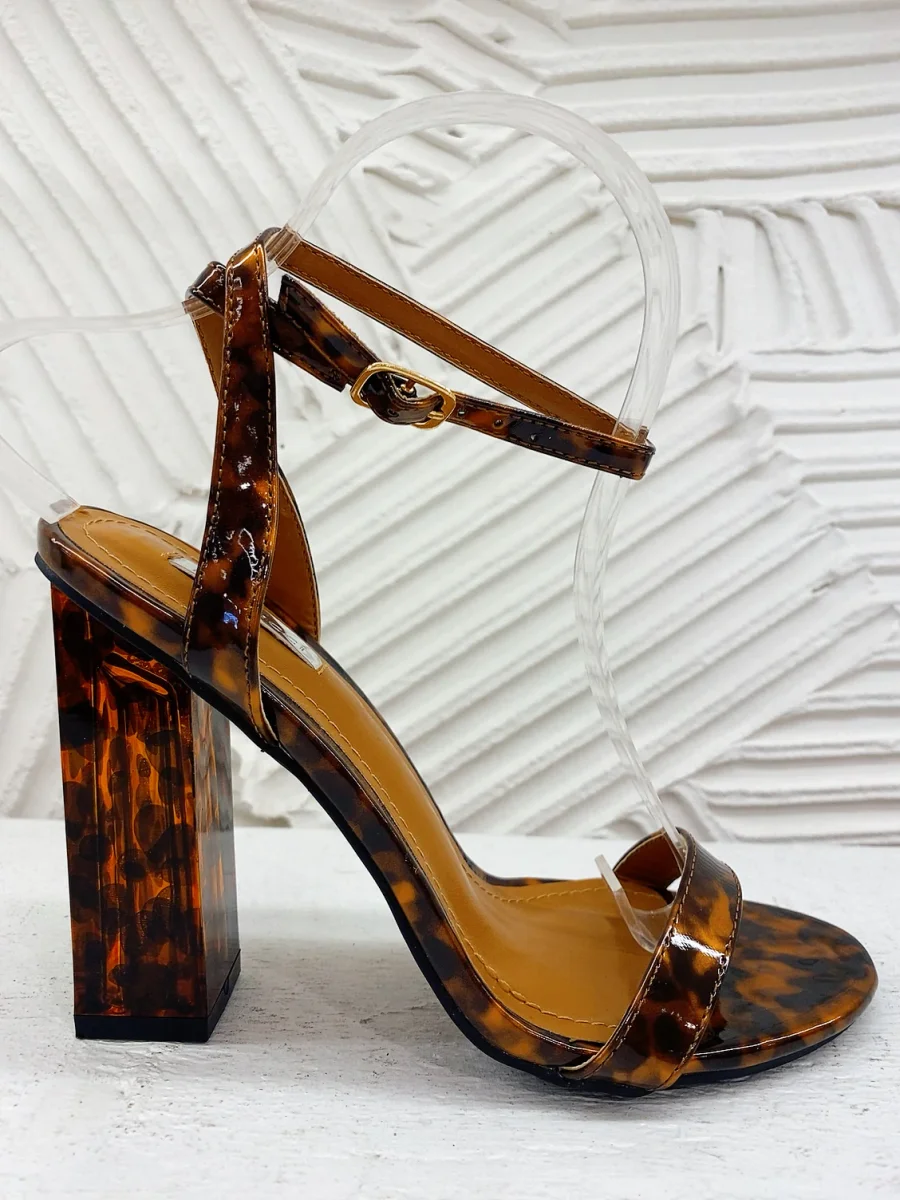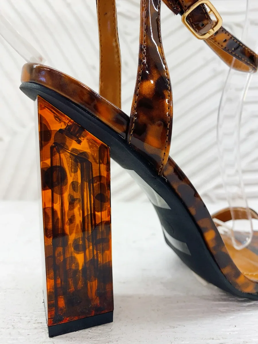 Sandalo con tacco in plexi in trama maculata 11cm