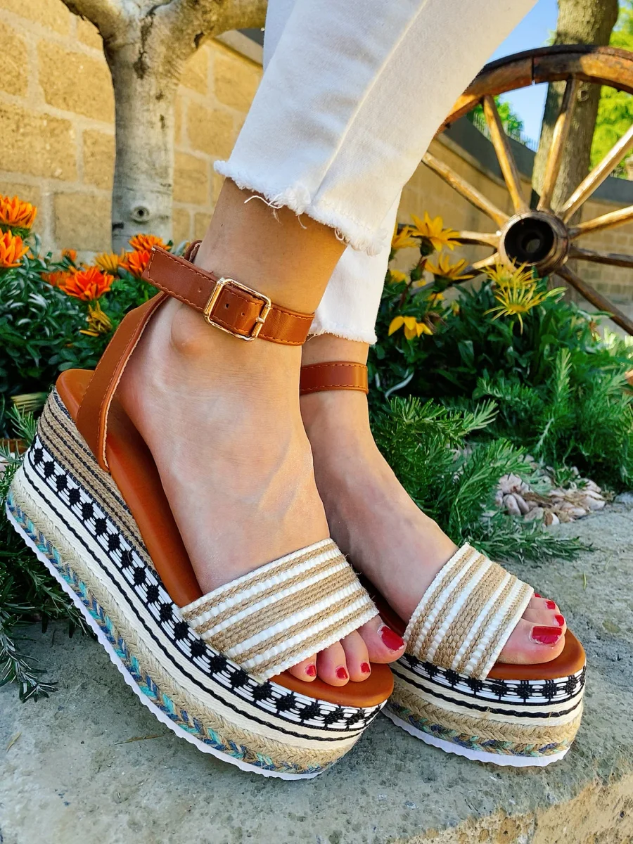 Sandalo puramente estivo rifinito in corda . Calzata regolare