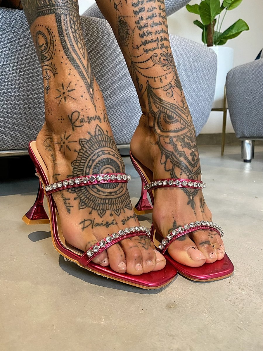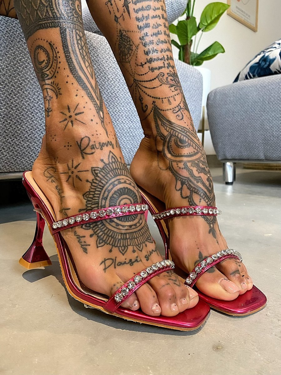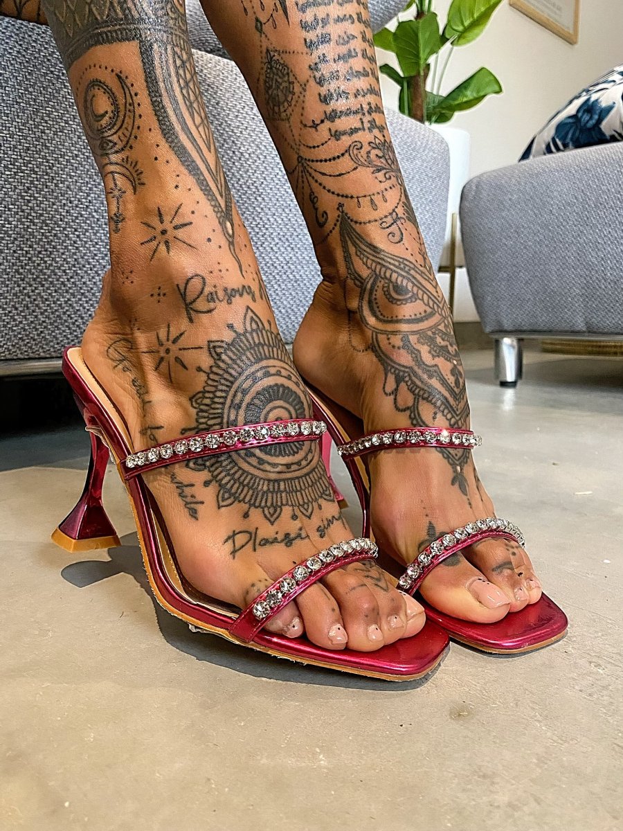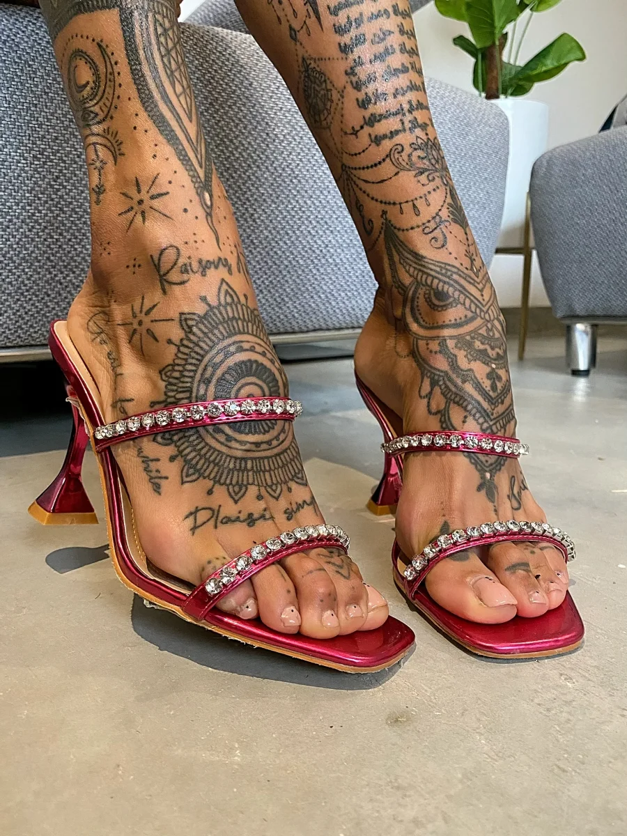 Sandali punta quadrata con strass, altezza tacco 10cm