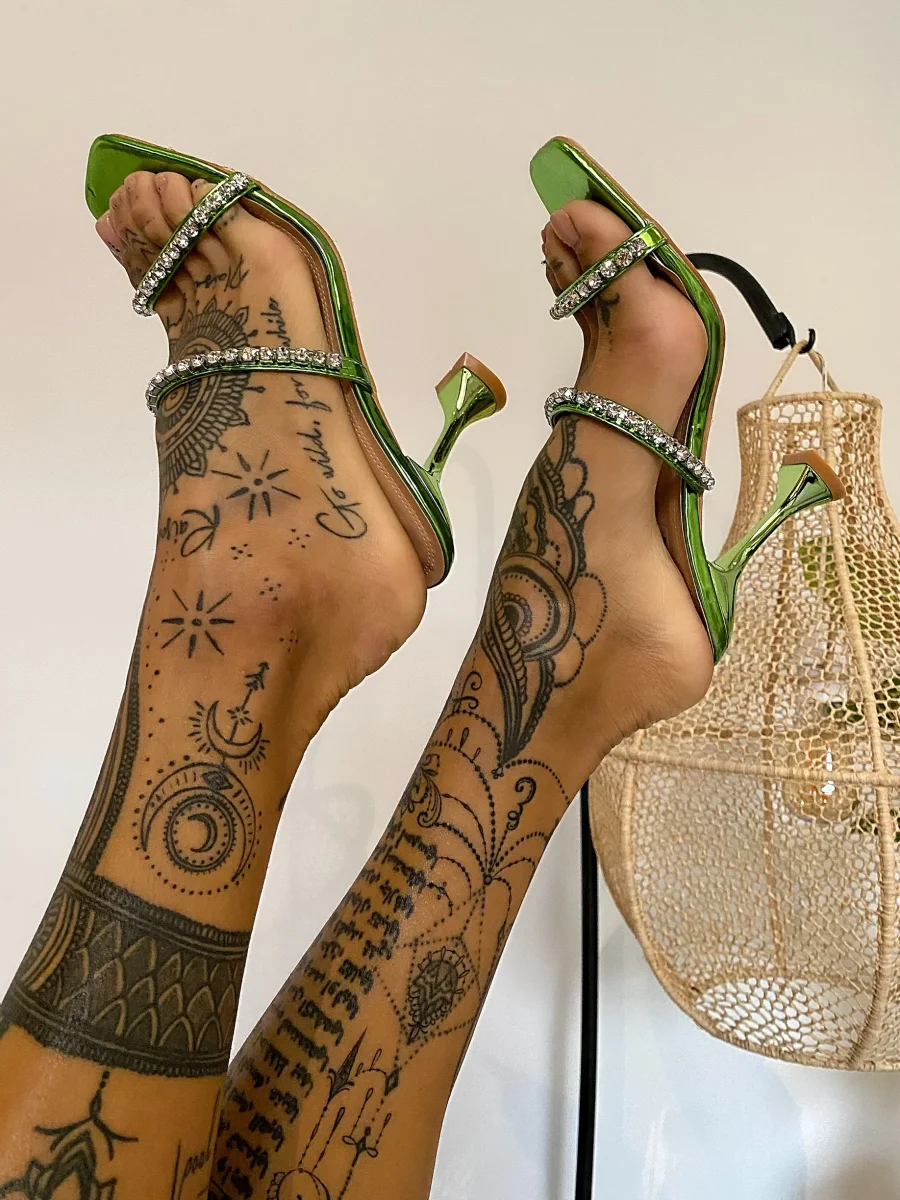 Sandali punta quadrata con strass verde