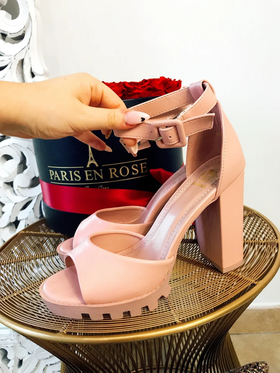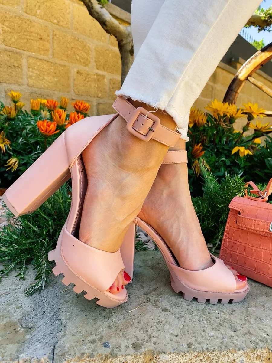 Sandalo in gomma con fibbia con tacco comodo e stabile. Laccetto regolabile tono su tono
