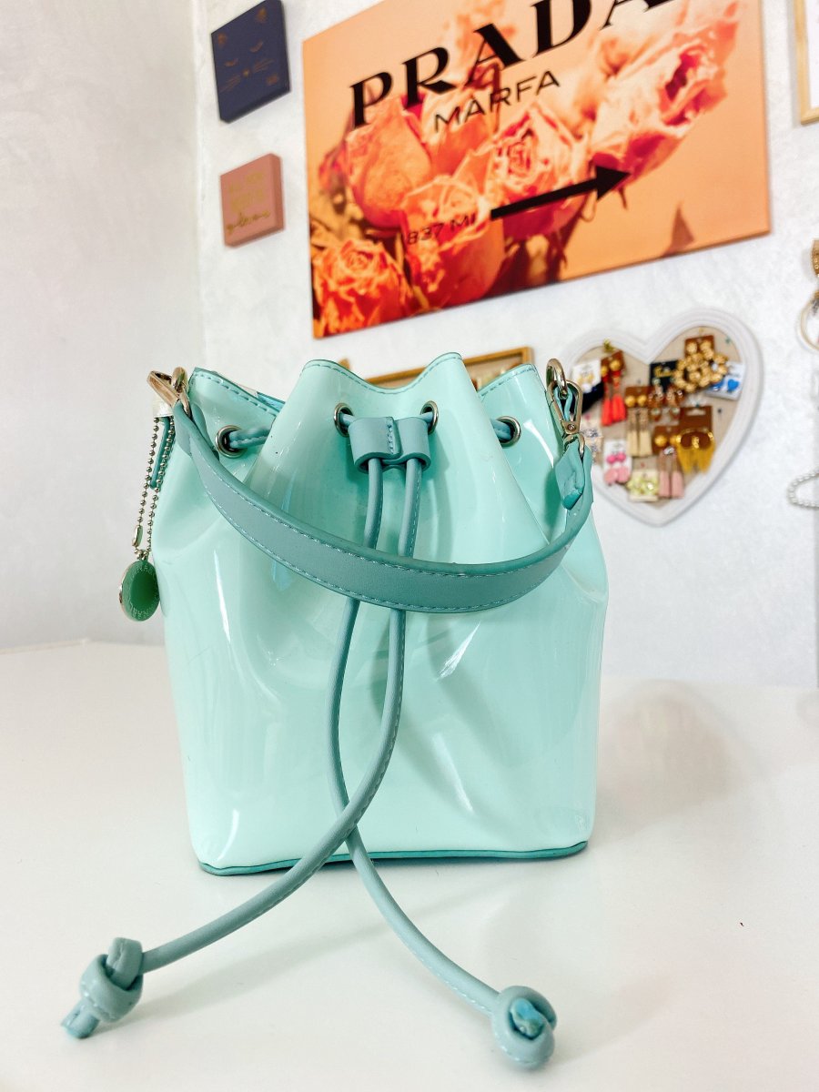 Secchiello in color pastello, comodo, chiusura con lacci e con i colori più amati di questa primavera.