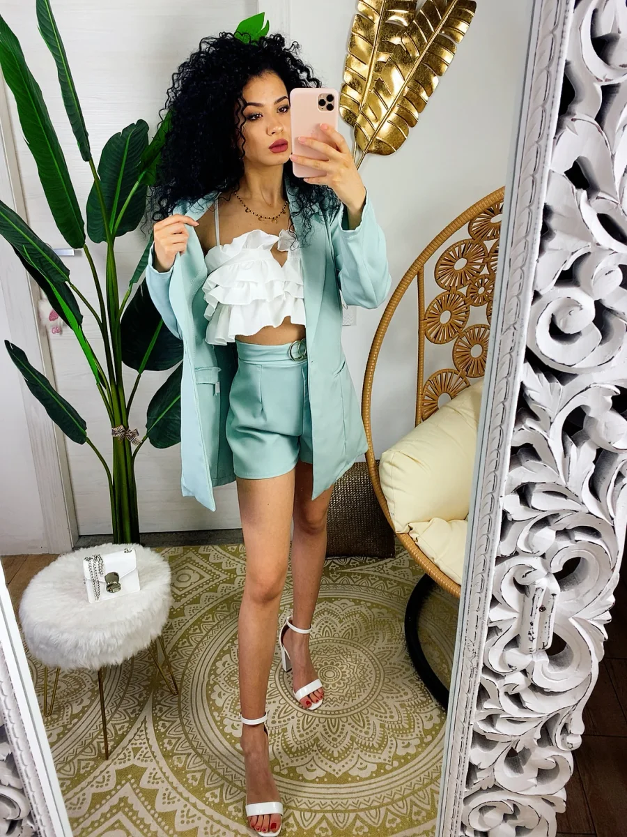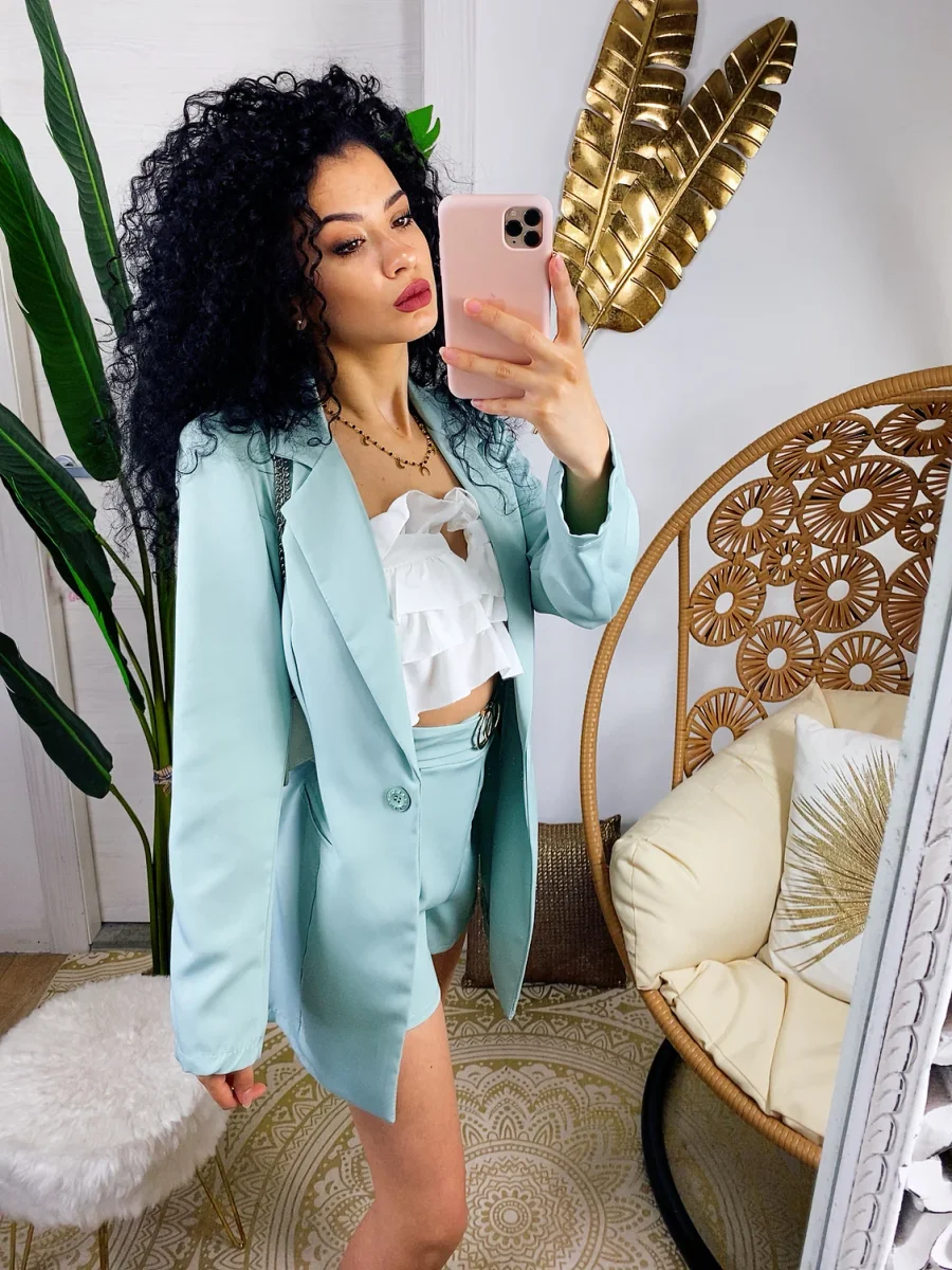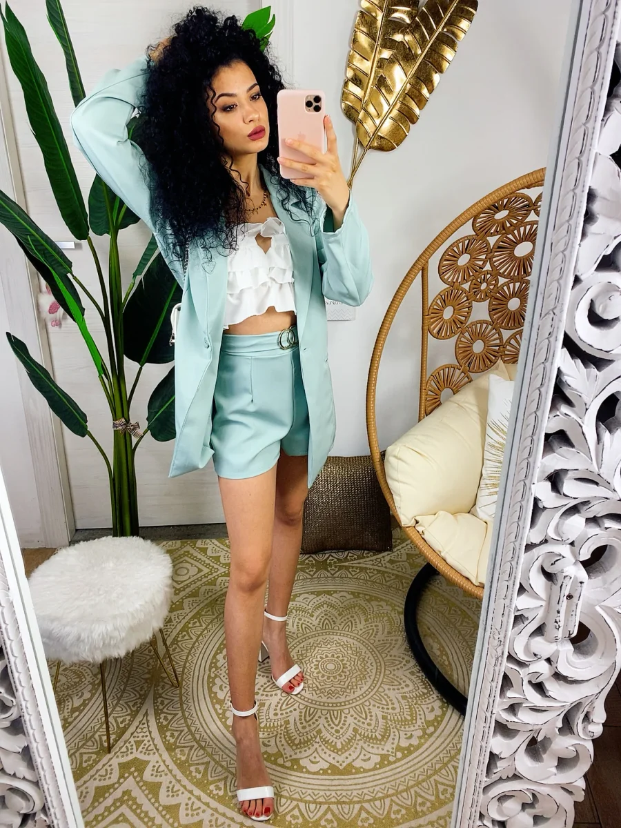Set giacca e short verdeacqua
