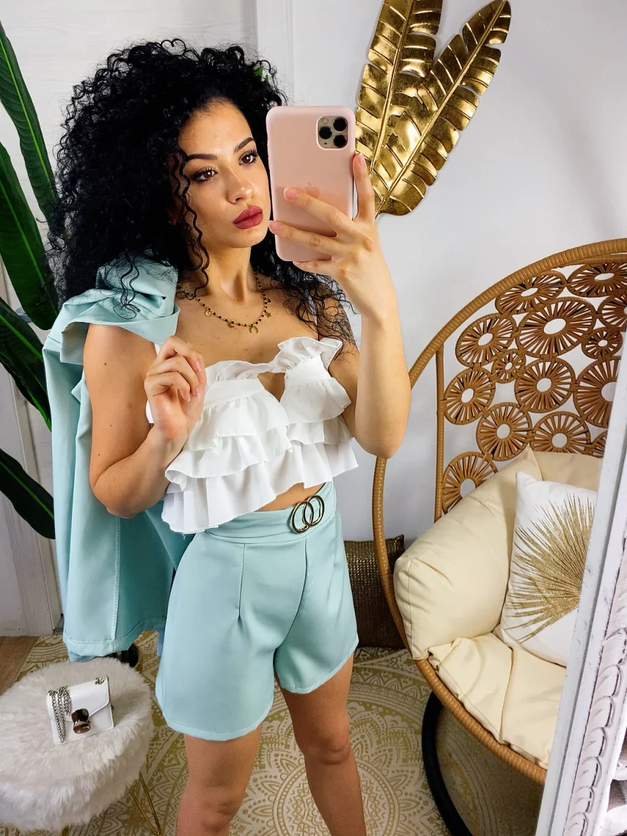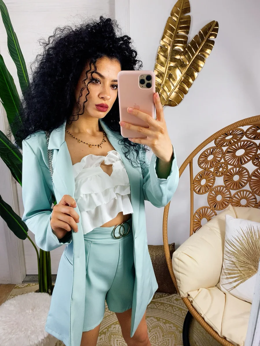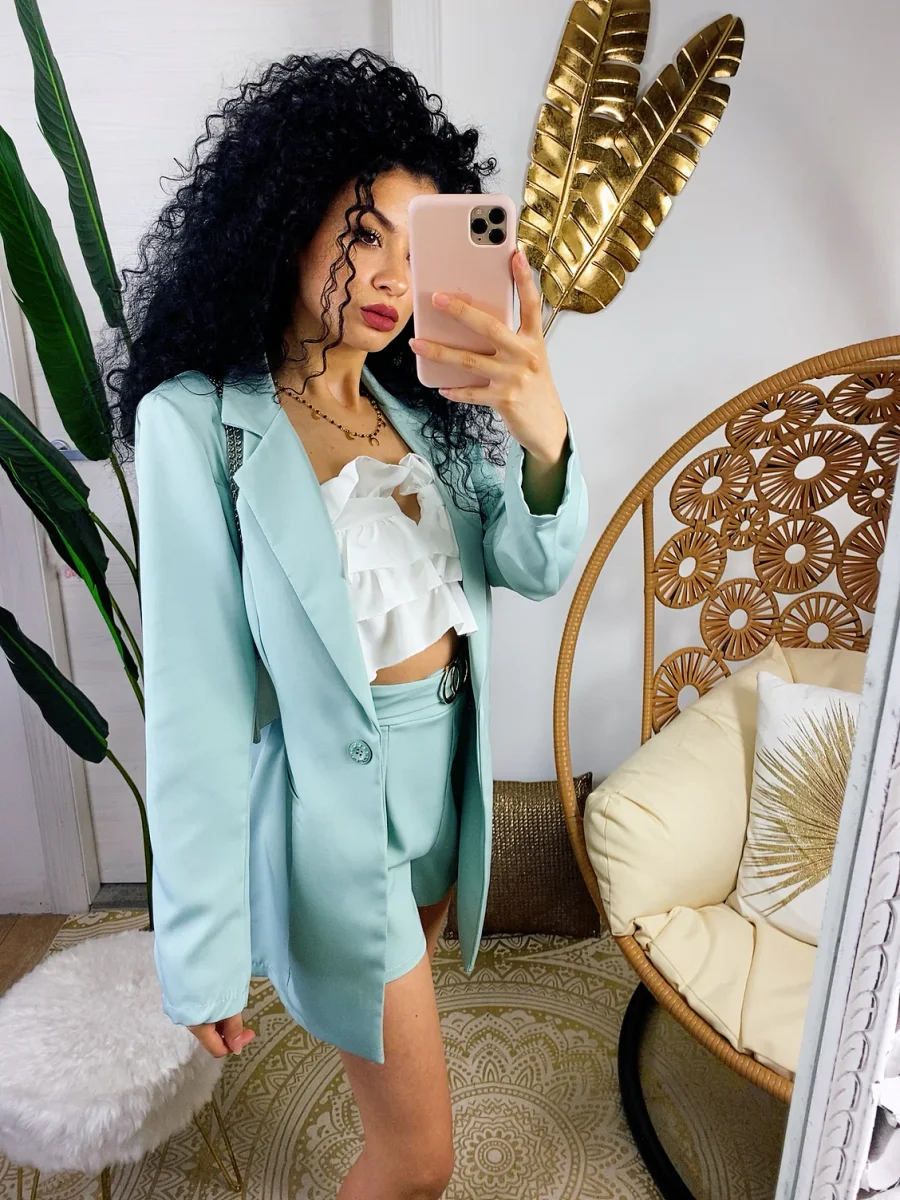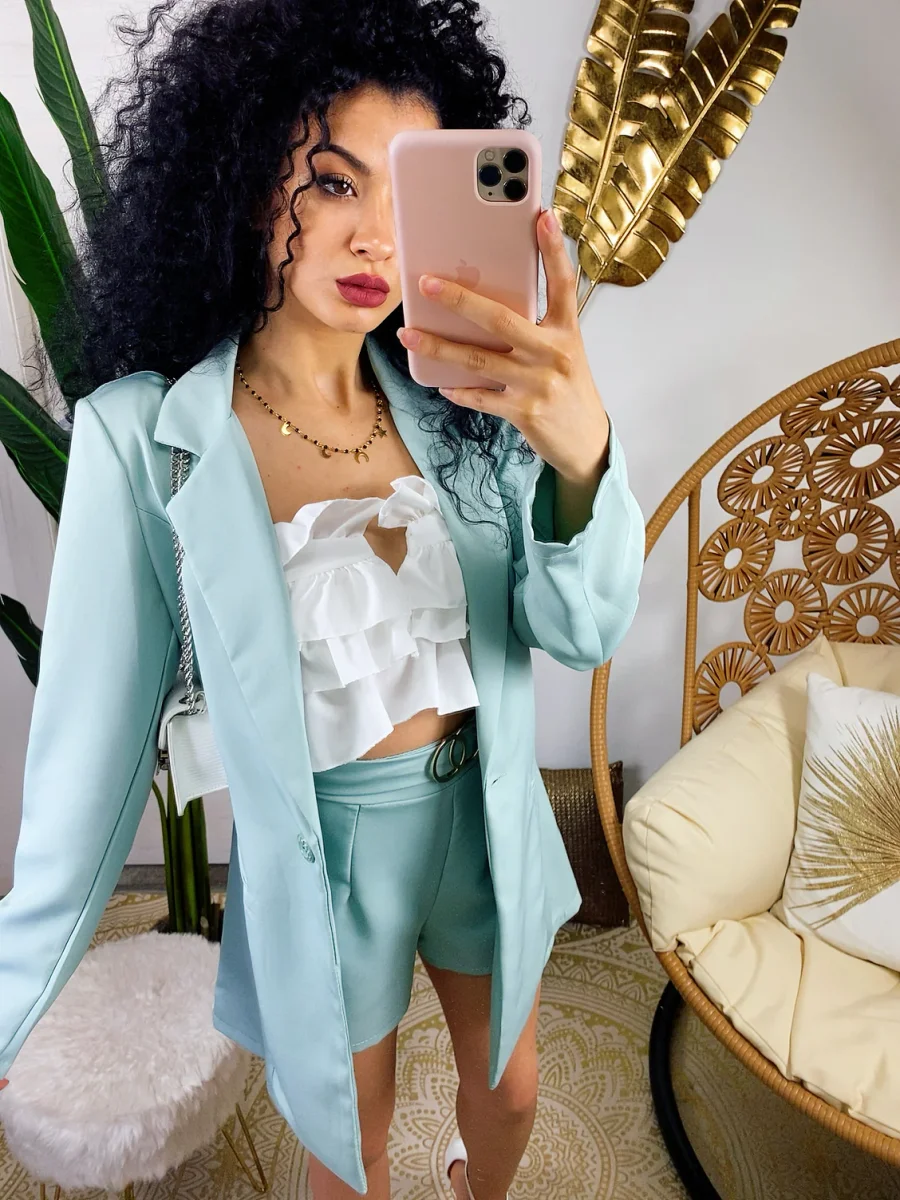 Set giacca e short verdeacqua