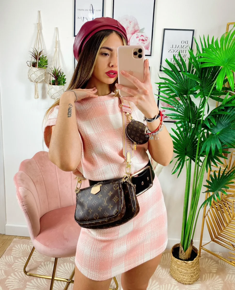 Set gonna e maglia crop Rosa In check, elasticizzato ottima qualità.