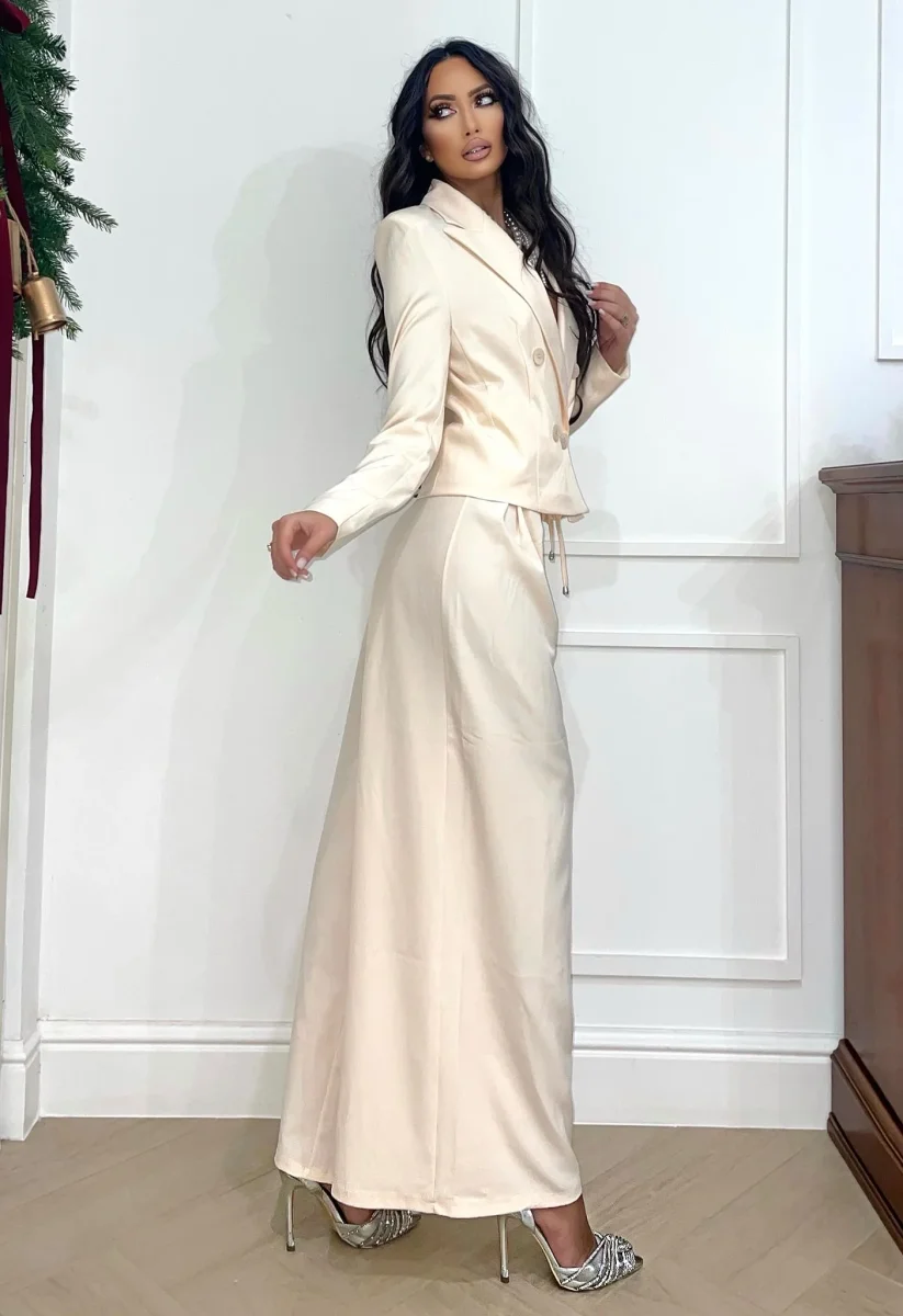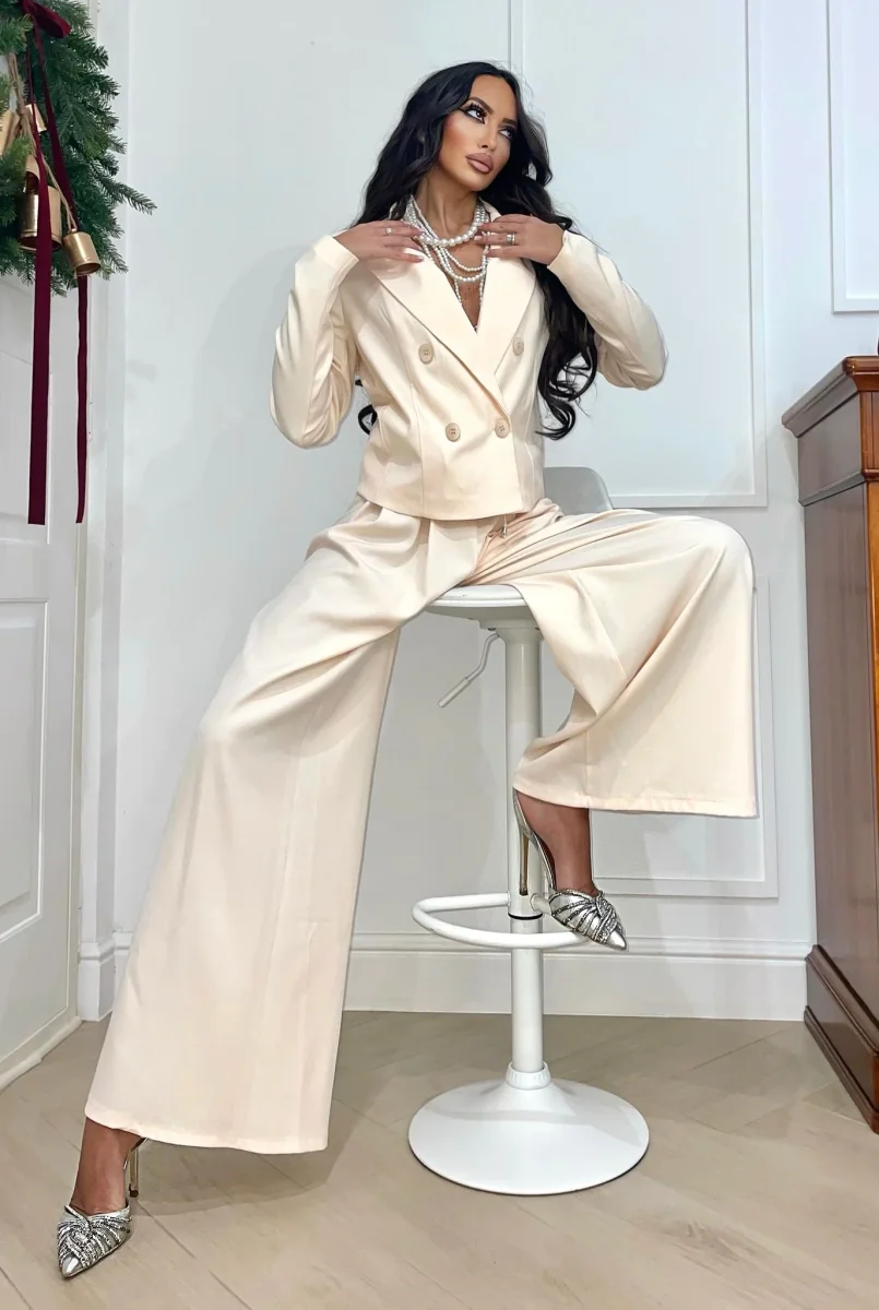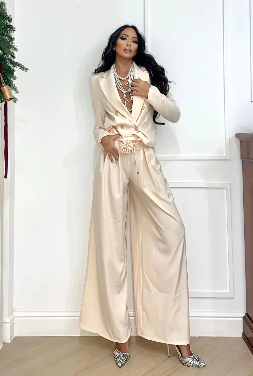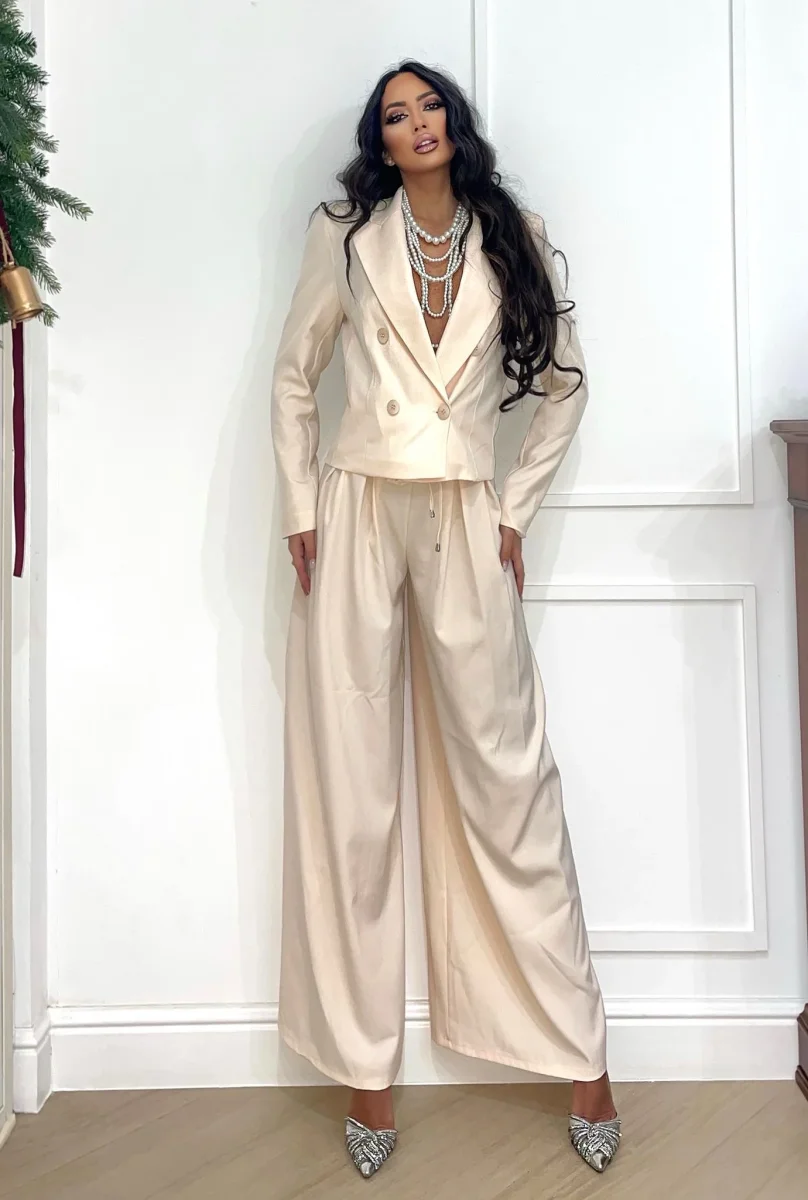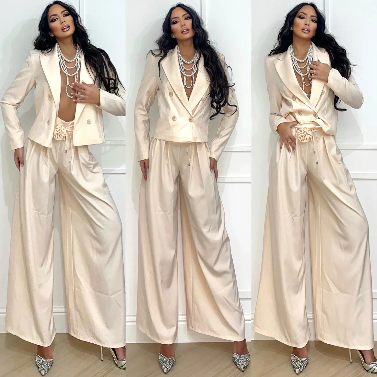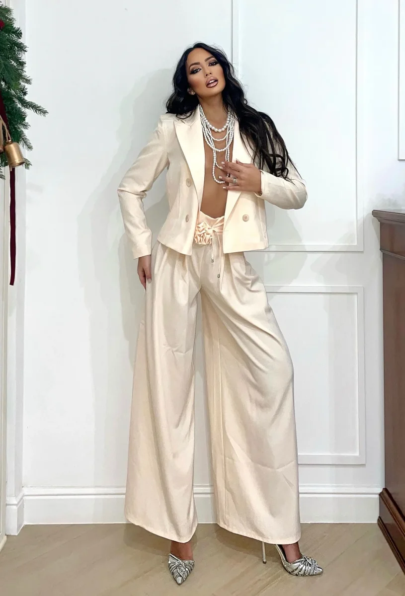 Pantalone a zampa con elastico in vita e cintura con rosa rimovibile