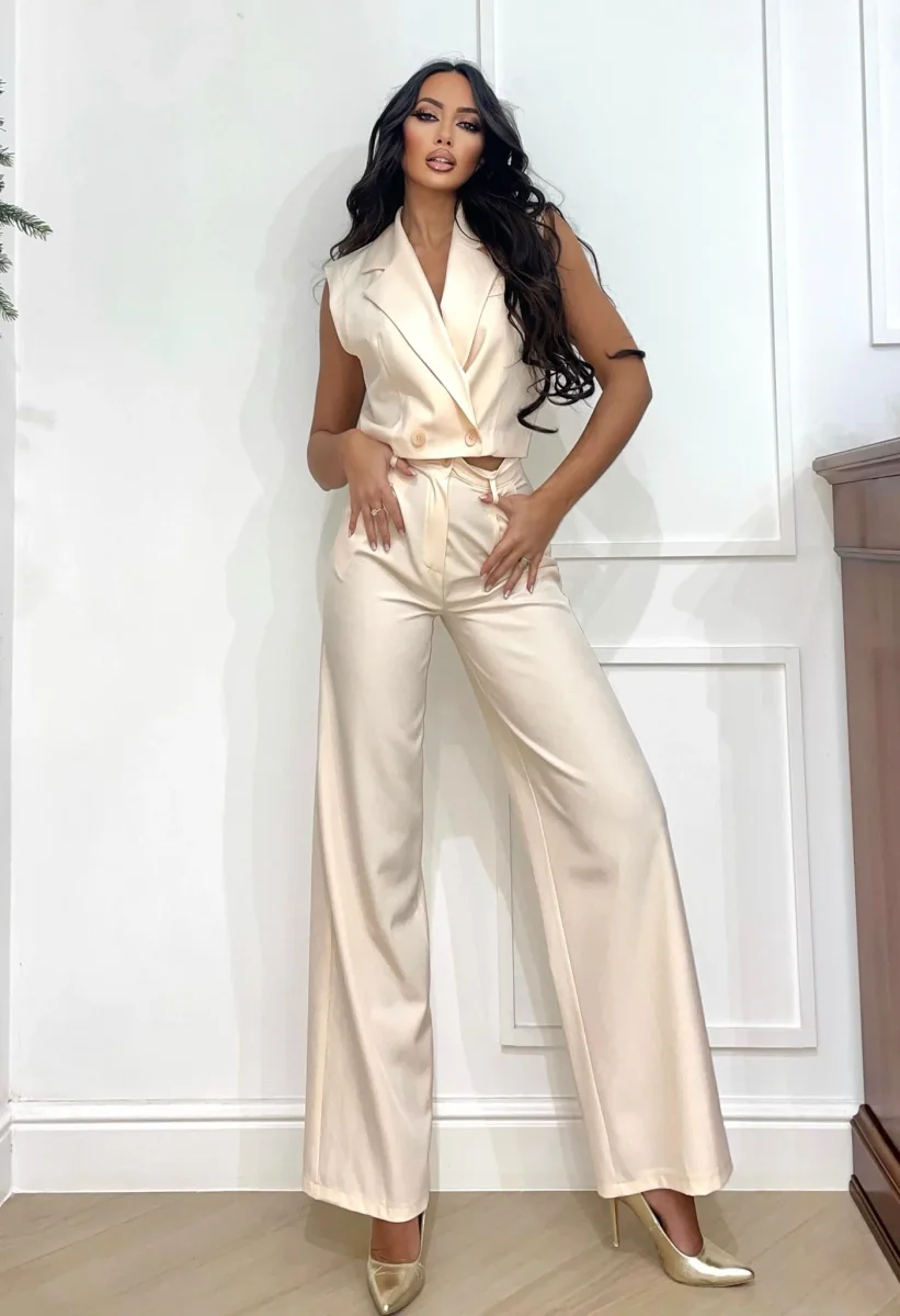 Pantalone a zampa con elastico in vita