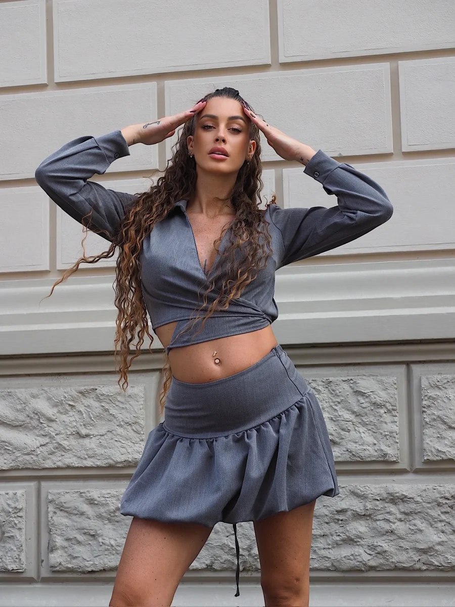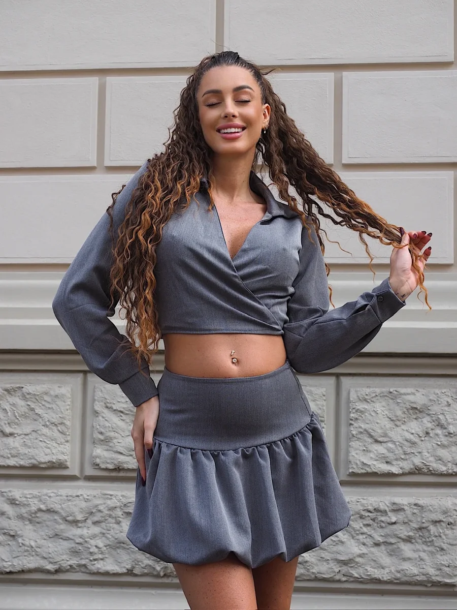 Set scaldacuore e gonna grigio, modello elasticizzato.