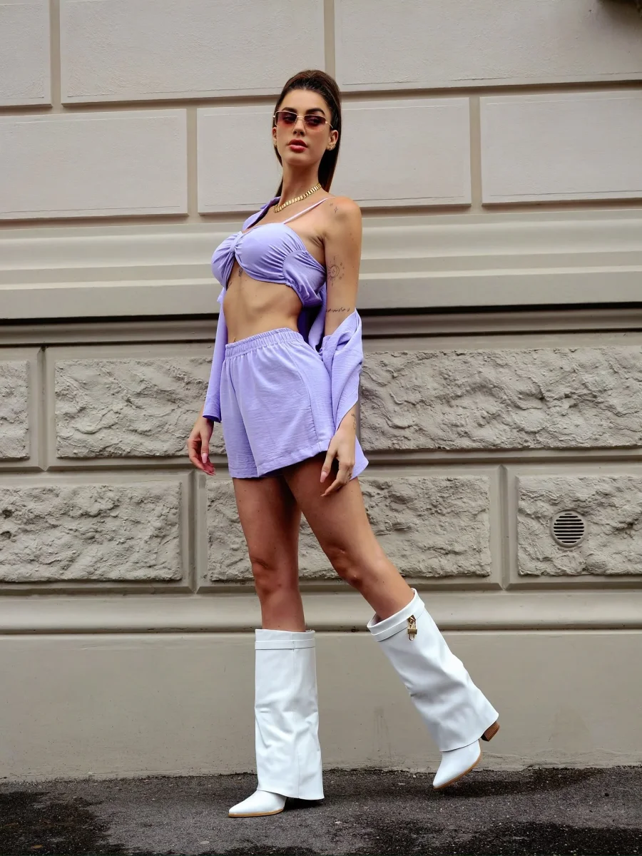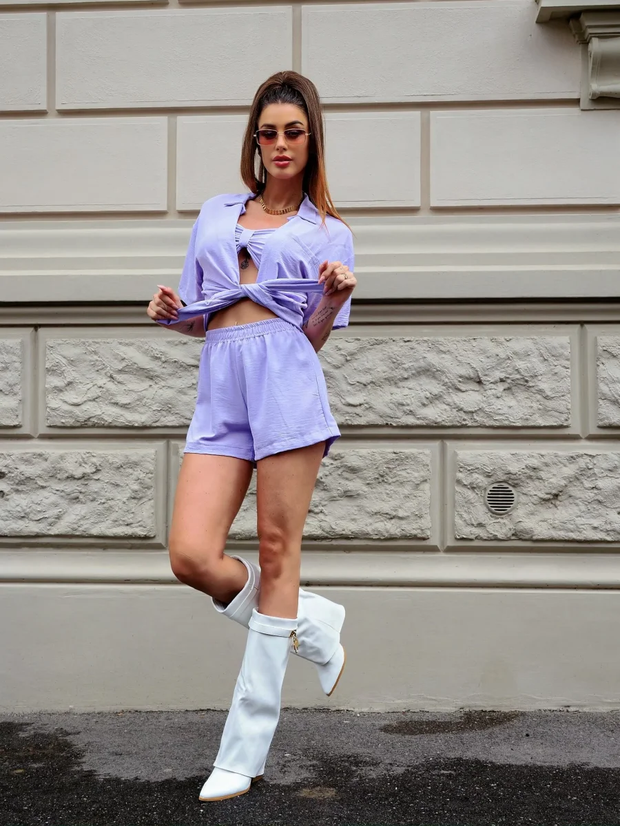 Set tre pezzi venduti insieme composto da camicia, top e short molto elasticizzati. Vestono fino a una 44
