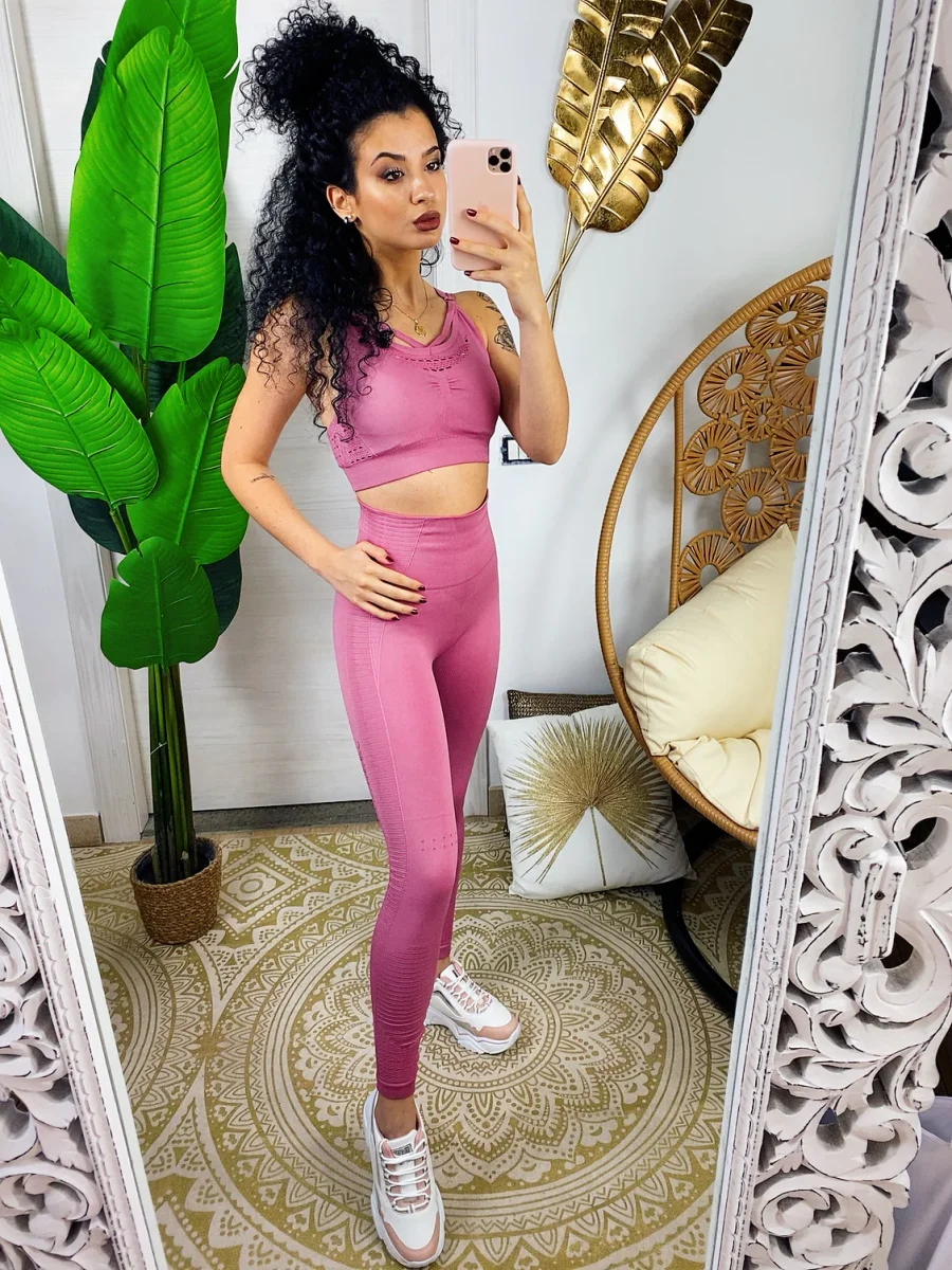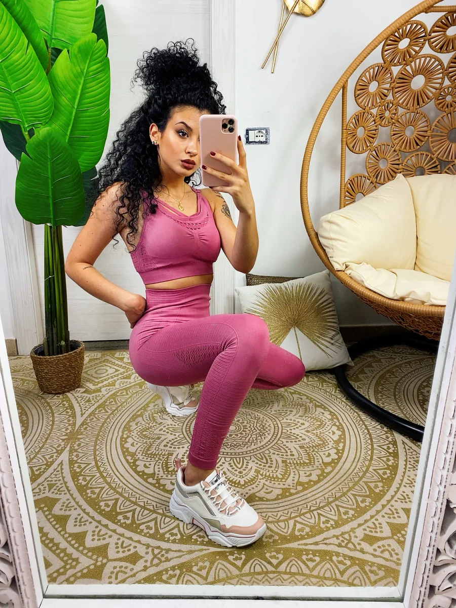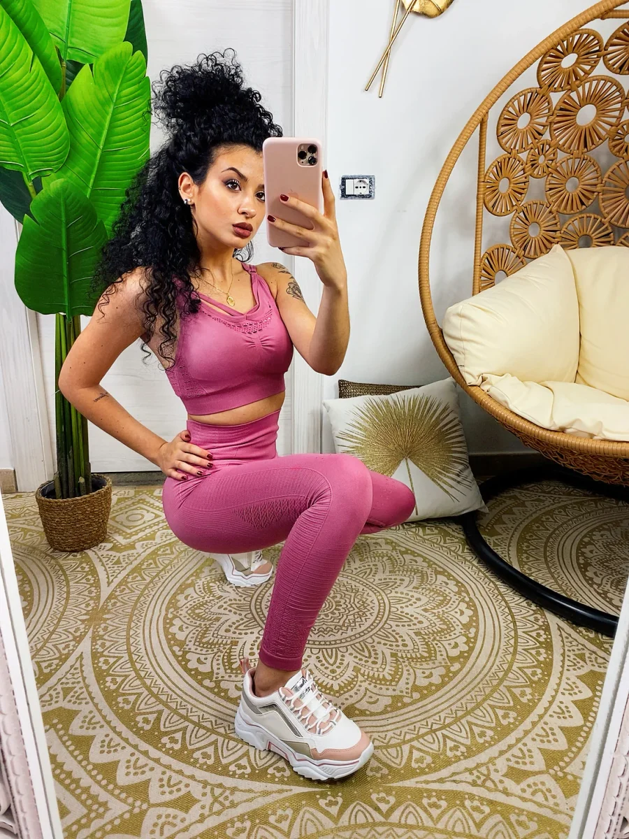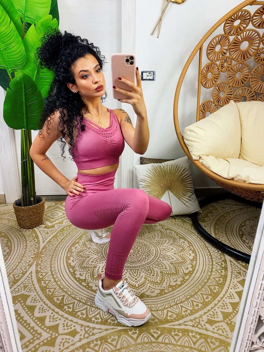 Set tuta sportiva colours rosa composta da top elasticizzato e Leggins traspirante molto comodo.