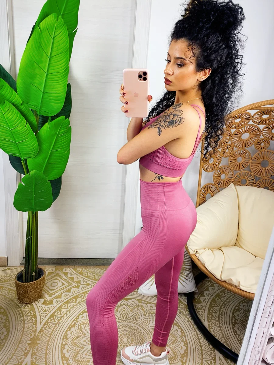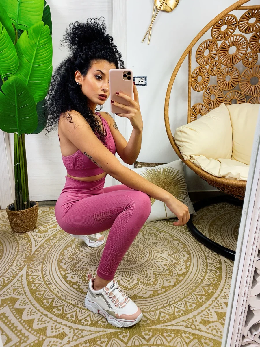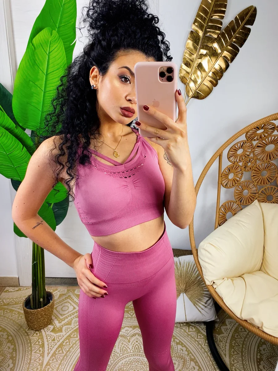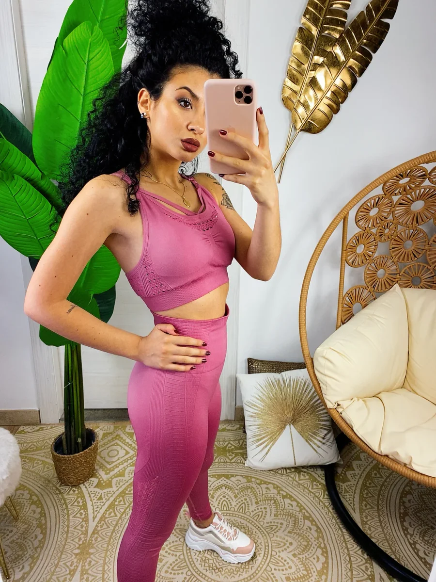 Set tuta sportiva colours rosa composta da top elasticizzato e Leggins traspirante molto comodo.