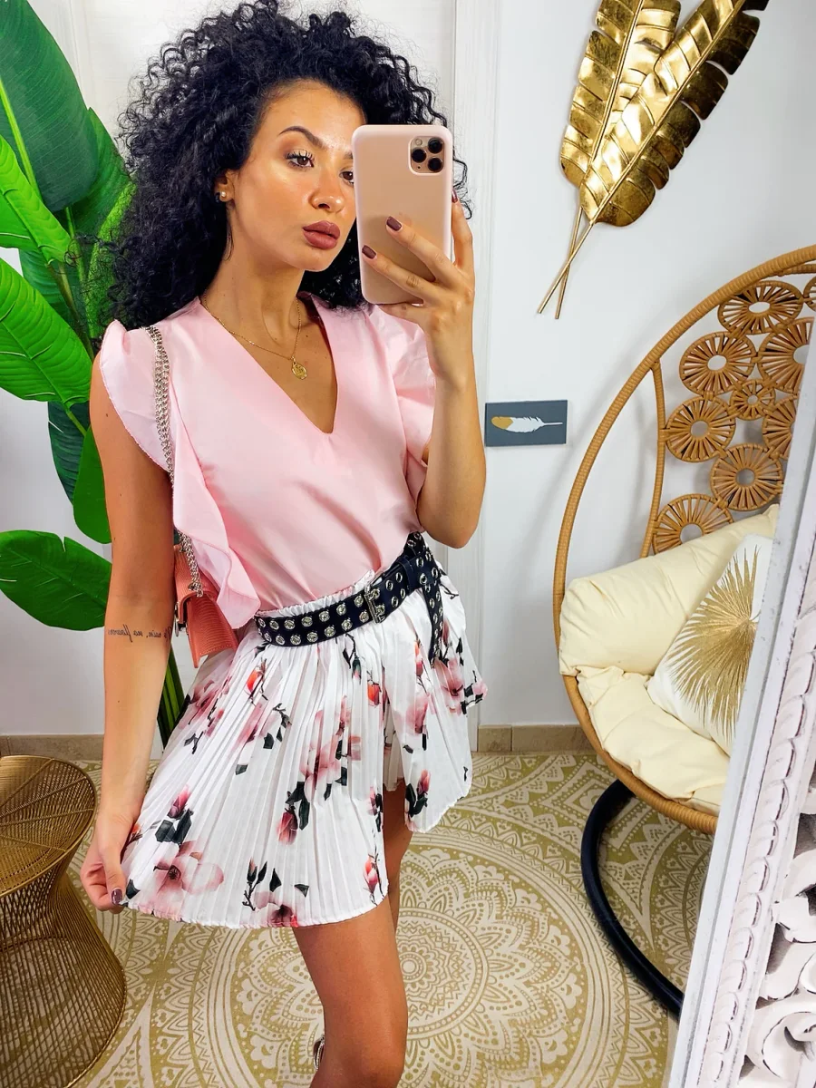 Short a pieghine con elastico in vita in fantasia floreale. Taglia unica elasticizzato